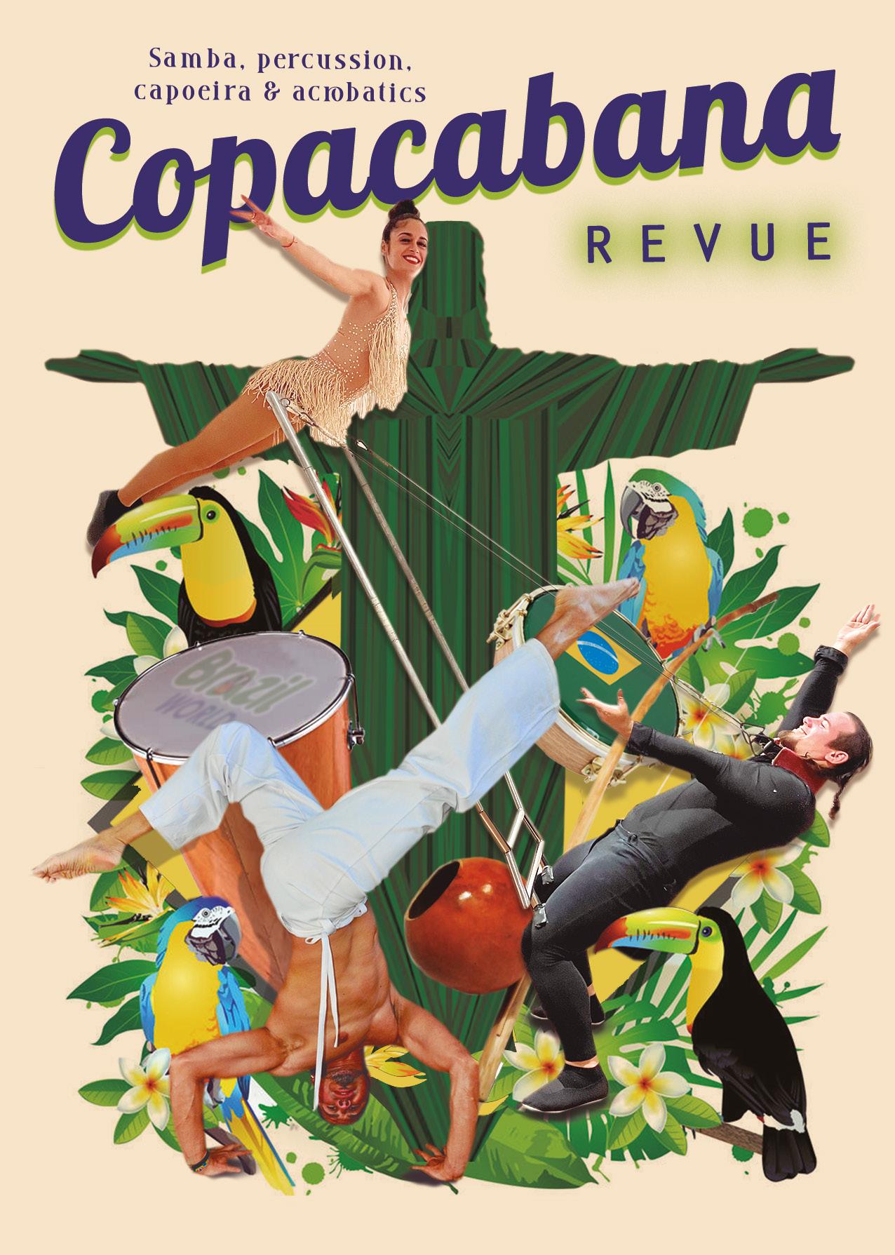 Participatory show inspired by the sun and the tropics. Acrobatics, dances and music from the four corners of Brazil to make you travel and have a great time. A show full of energy, elegance, brilliance and music!