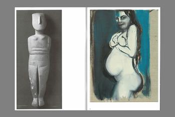This cahier is about an exhibition that took place in the imagination. For the fall of 2022, Dumas prepared an exhibition at the Museum of Cycladic Art in Athens, in dialogue with the museum’s collection. Although the exhibition has been postponed towards 2025, this anticipatory publication already arose from Dumas’ enthusiasm and aff ection for this combination. The enigmatic Cycladic antiquities, dating from 30002000 BC, speak to us in the same timeless language as Dumas’ contemporary works.