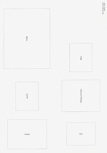 Compositions with frames, lines, dots, bars, scribbles, numbers, and pictures, all scanned from magazines and books in the library of the Laimun artist-in-residence program in Sardinia (Italy). With an accompanying text by Anya Jasbar.