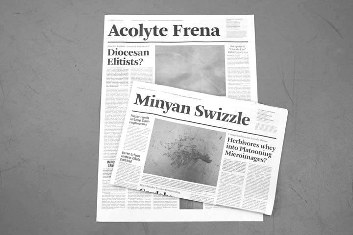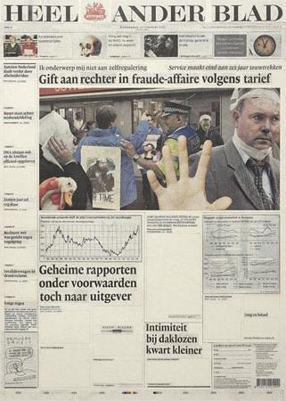 The concept of this newspaper is based on the fascination for the fact that something outside your body, for example five frozen animals on a row, can make your brains think ‘five’. The paper contains only fives and has been spreaded over the city of Arnhem in the context of the exhibition Sonsbeek 9 in Arnhem. Edition 150,000