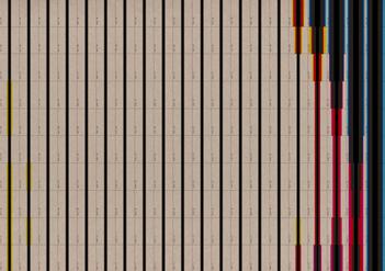 During his residency at Villa Medici in Rome in 2020 and 2021, artist Simon Boudvin explored a collection of old issues of architectural and design magazines, focusing on the 80’s period. In them, splotchy, stripy, wiggly, flashy shapes are brought together in a cheerful environment by artists, architects, photographers, designers, manufacturers and more. These contributors participated in creating the common ornamental background of that time. Boudvin has now collected together noteworthy pages from those magazines to create a composition of 192 close-ups enlarged to 400%. By just zooming in on patterns, textures and graphic samples, without depicting any objects, a beautiful chapter in the history of Italian design unfolds.