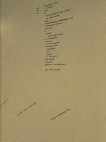Collection of poems by Mark Manders, in Dutch only. The abstract cover fits with the title and the precize but detached descriptions, which evoke a probing mental perception of the fictional character Mark Manders. Reprinted in 2017 on the occasion of Kunstenfestival Watou.