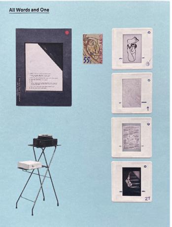 Small book with collages by Oudenampsen, made as models for larger paintings. Printed in diamond screen o ff set and stapled in a thin glossy cover. Edited in collaboration with Mark Manders.
