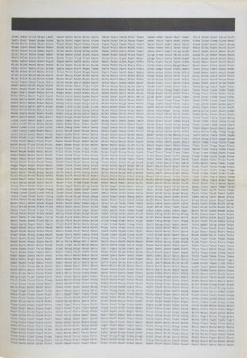 A 108-volume book (32,544 pages) containing all existing German words grouped in associative units of five words per page. The three words ‘Seelenwanderung’, ‘Geben’, and ‘Plastiktüte’ from this book have been framed alongside three corresponding photographs. In this way, the words and photographs are guided in their variable meanings. This work is actually endless, since it can continually be expanded with the addition of an infinite number of photographs to each word in the book. Edition: 2 sets of 108 books (See ROMA 4 for context)