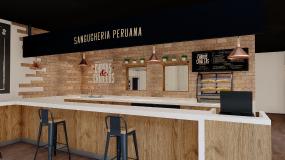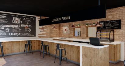 Para la propuesta de diseño para la sanguchería peruana. Se utilizó un diseño industrial para la ambientación, en la que destaca el uso de enchape de ladrillos, sillas tólix, uso de gráficas tiza, lámparas en tonos cobre, entre otros.