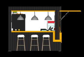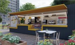 Propuesta de cafetería modular, lo cual le otorga un plus, al ser un punto de venta fácil de instalar y de implementar en diversos lugares.