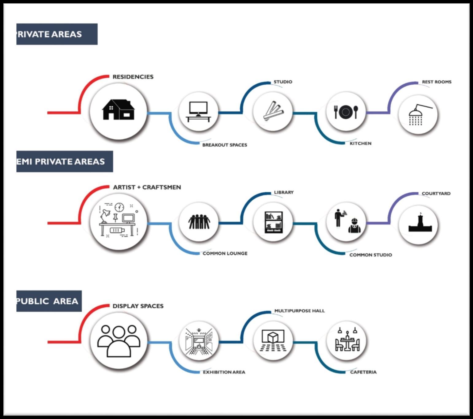 The buildings are placed in a way that views of Wazir khan mosque can be seen from most of the parts of the buildings artists’ studios have been given utmost importance while considering views and their functions