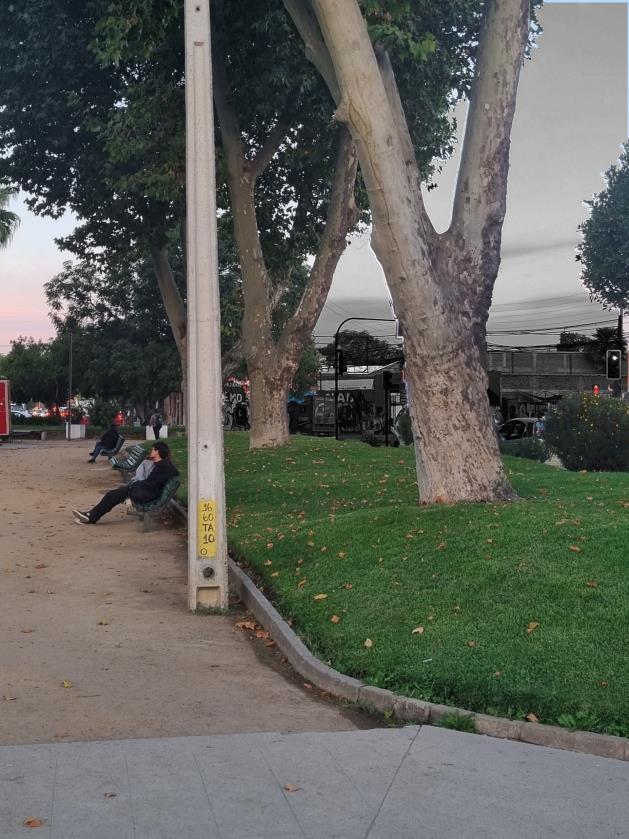 Ciudadanos utilizando diferentes formas los elementos presentes en la plaza. Estos configuran el entorno, moldeándolo a su necesidad, por ejemplo en la fotografía “D” se aprecia como dos jóvenes utilizan la vegetación existente de la plaza para generar esta especie de circulo social, en donde comparten alimentos, conversaciones, entre otras cosa.