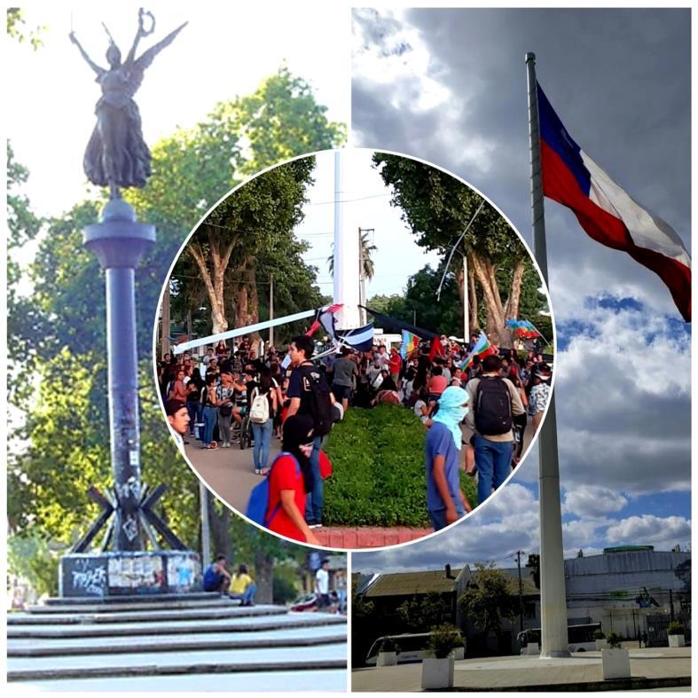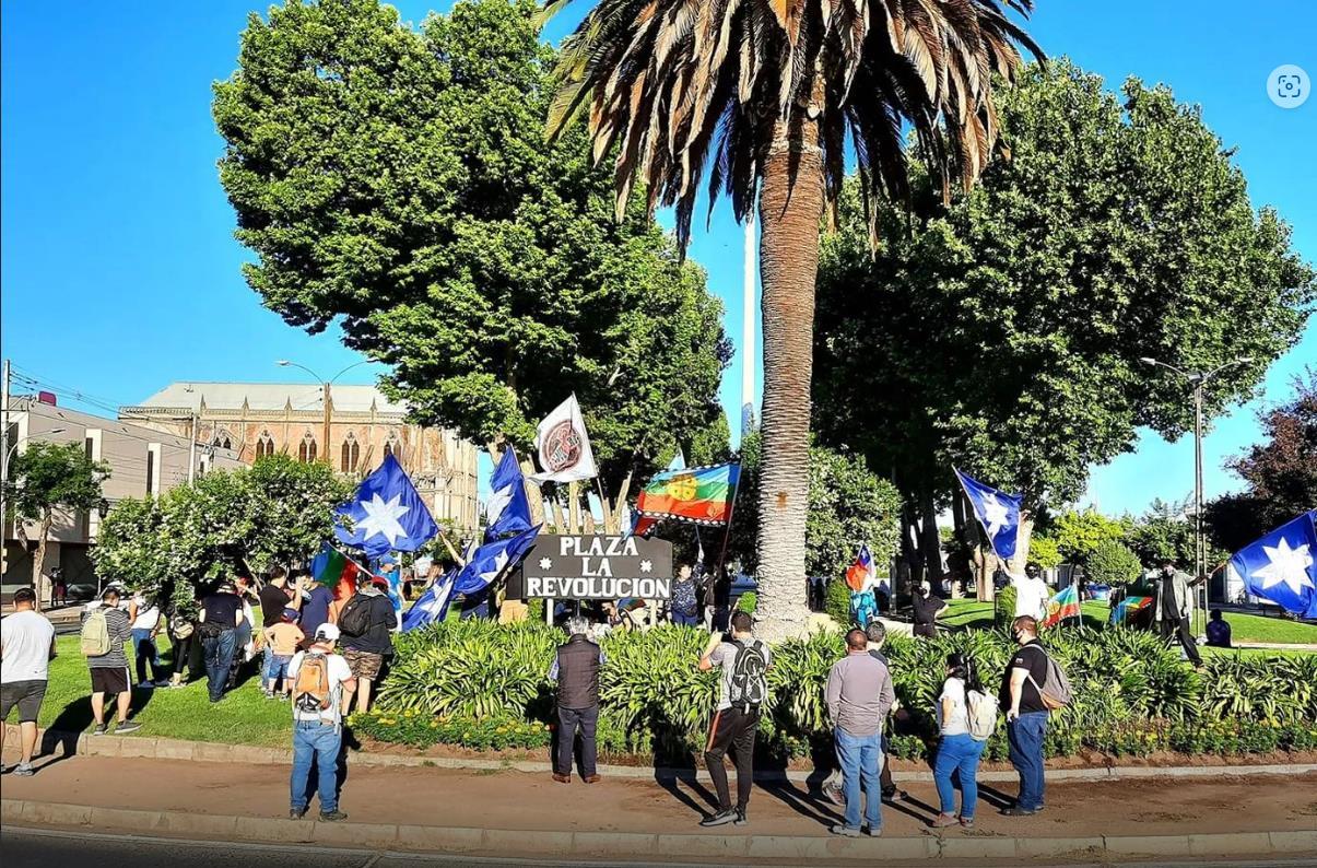 “Hoy para el PUEBLO que lucha es ¡Plaza la Revolución!” (Talca lucha 2020).