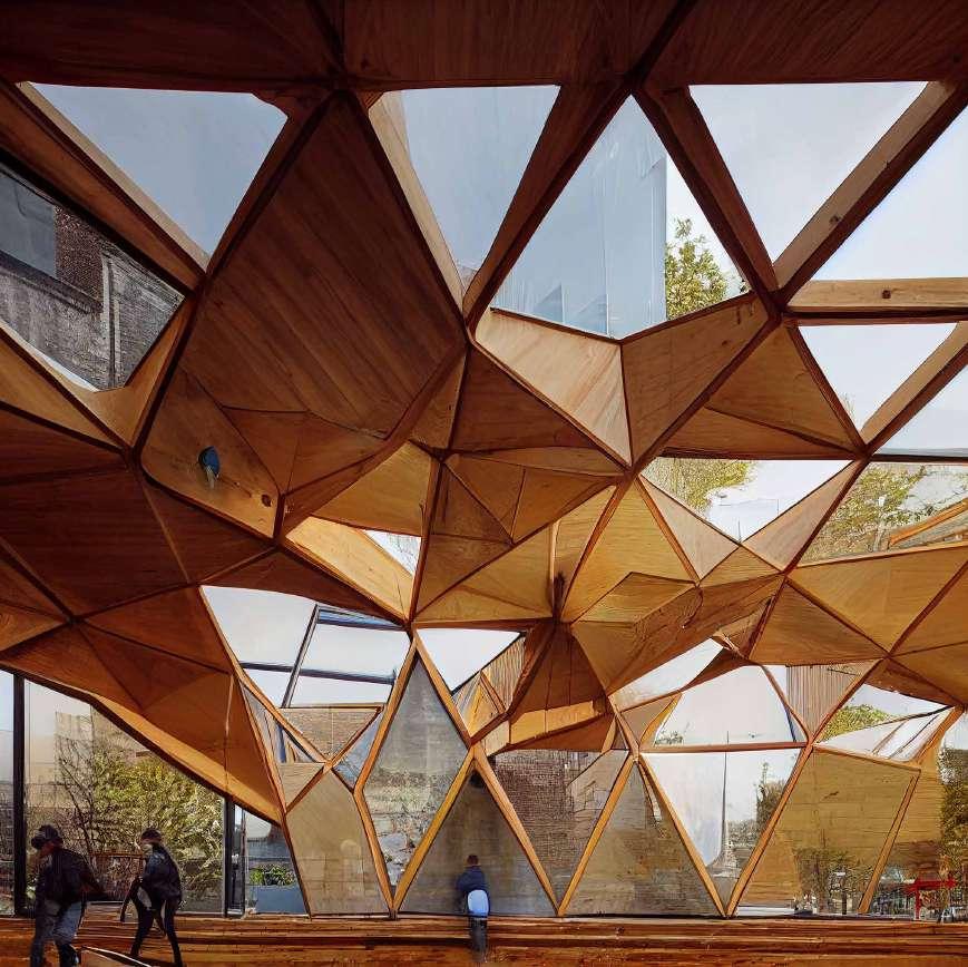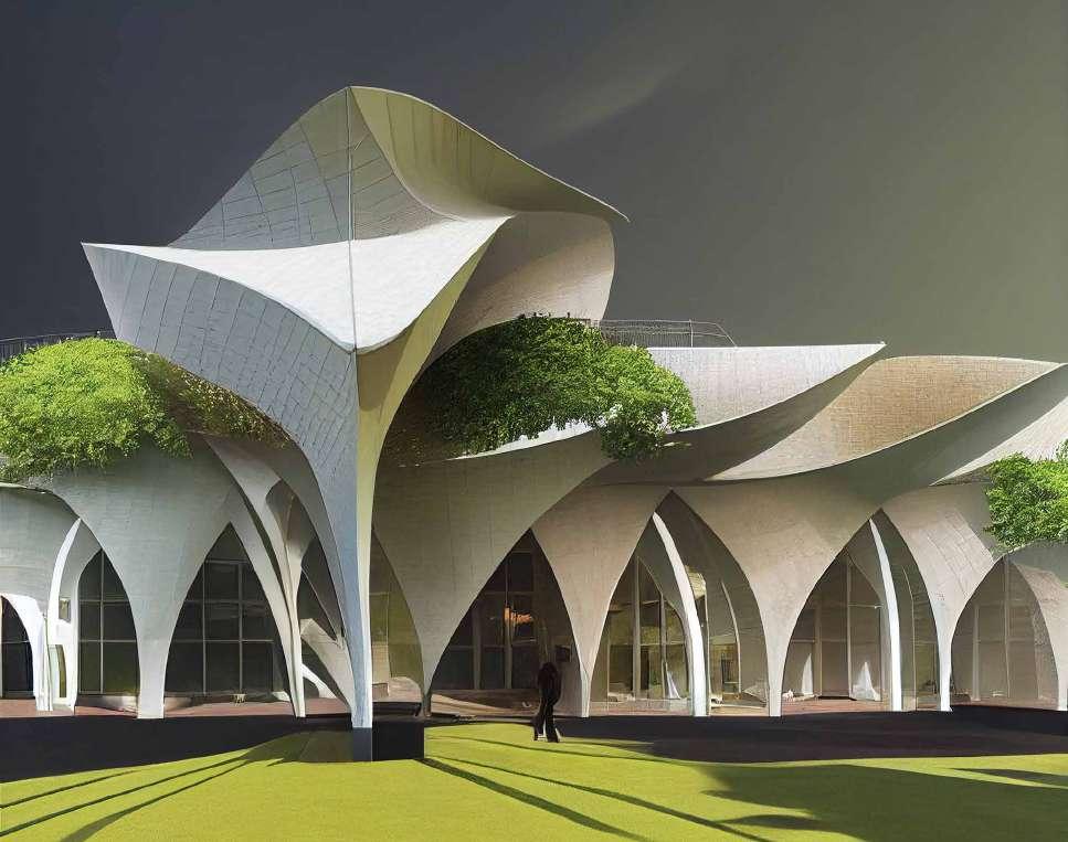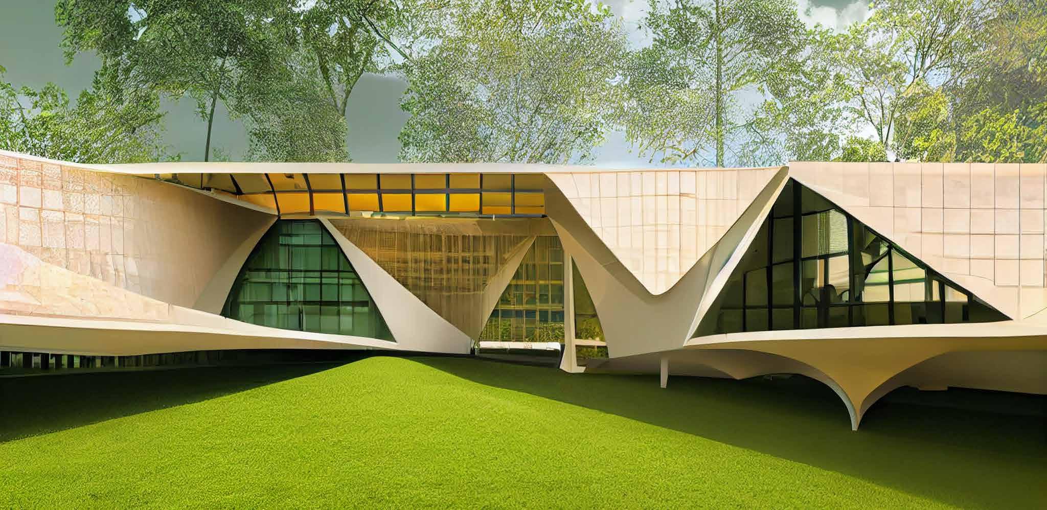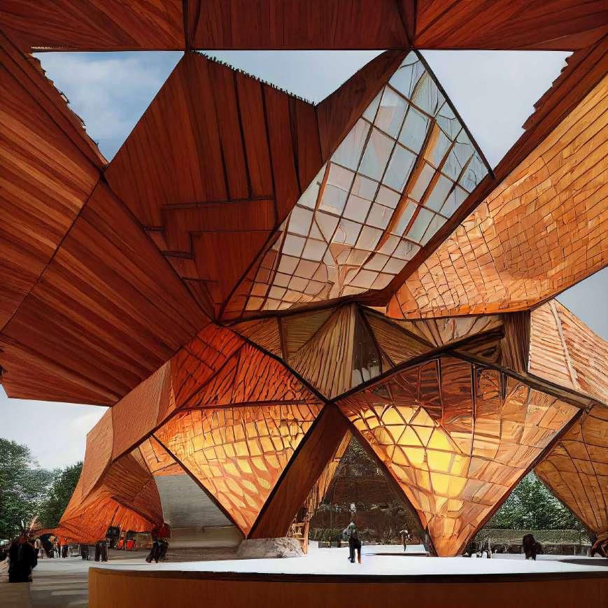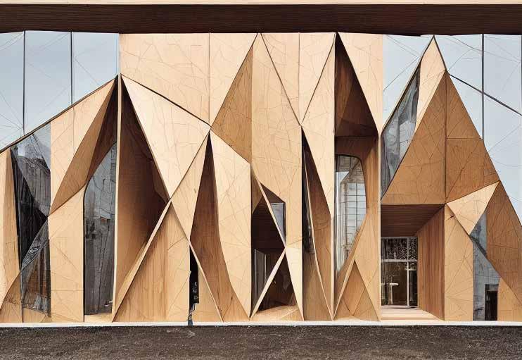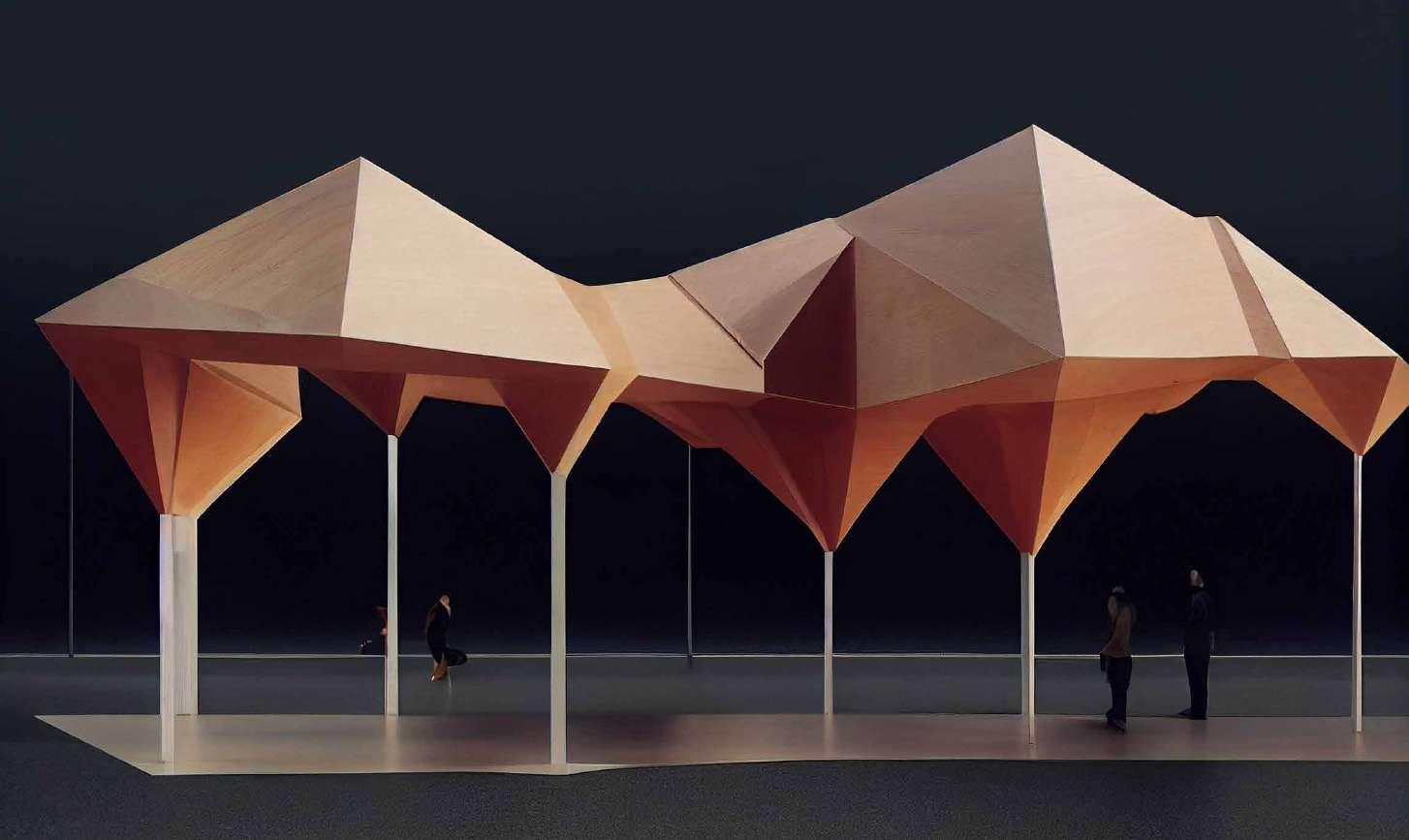 Midjourney out comes of the facade tectonics and massing. Regenerates the qualities of the endesa pavilion.