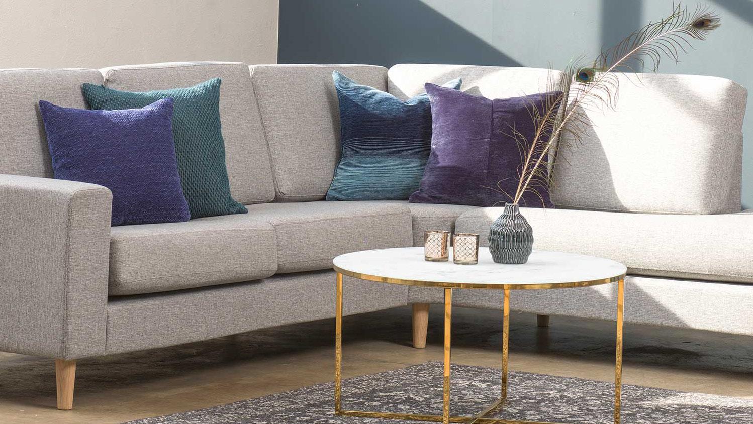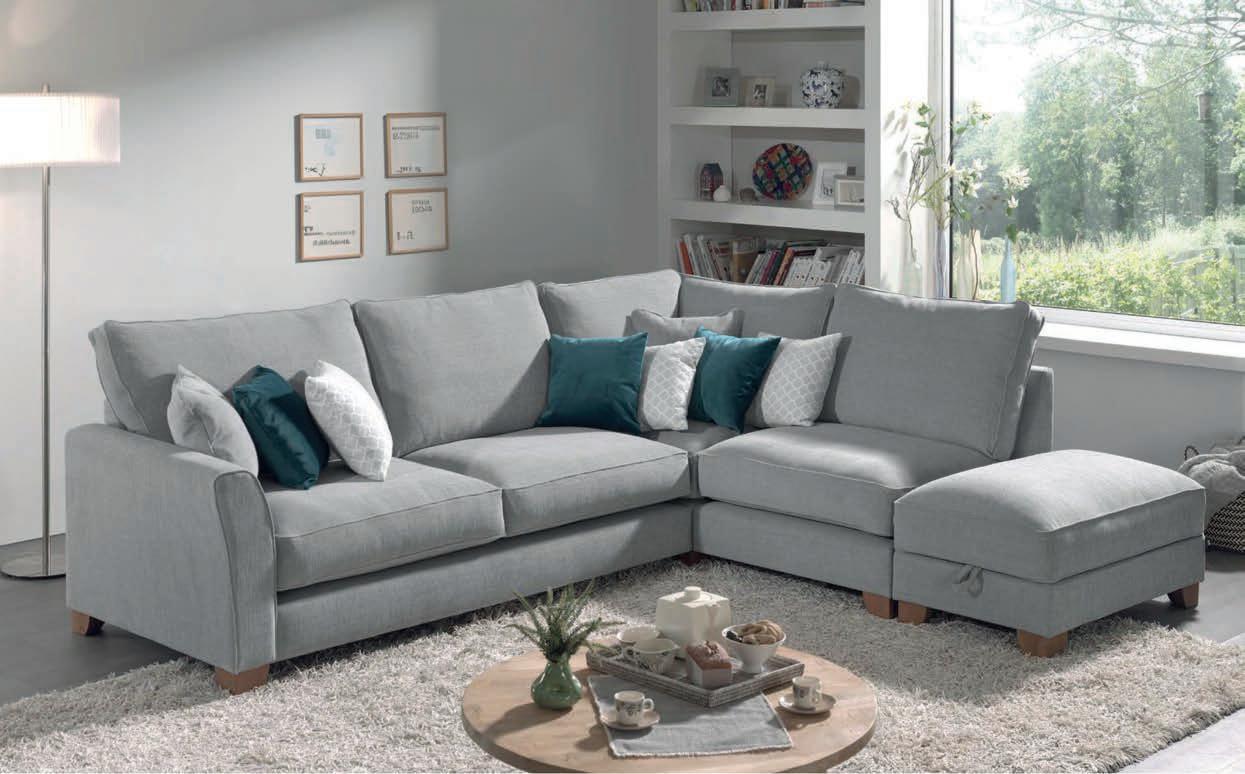 Dorset 3 seater + corner 90 + 1.5 seater + pouffe with storage in silver