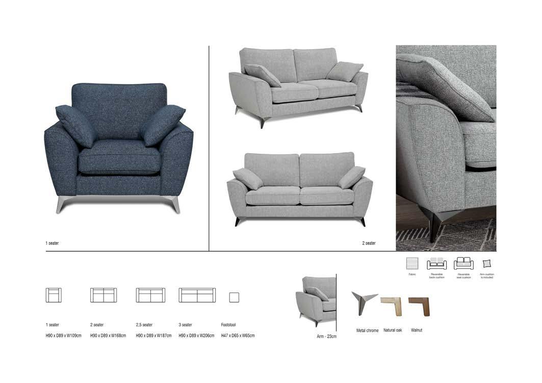 Prices shown in grade 1 fabric, many different fabrics and colours available. Matching armchairs available for all products, and different size sofas and corner sofas available in store.