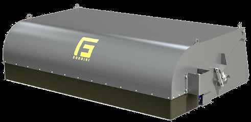 Sweeper with polypropylene bristles to clean and collect dust on all surfaces, both in and outdoor. Frame with 360° pivoting front wheels Collection bucket with tilt hydraulic cylinder. Easy matching with machines like skid loaders, articulated wheel loaders, fork lifts, telescopic handlers, etc.