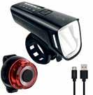 11 lux lichtopbrengst. Koplamp met 5 felle LED’s en een reflector achterlicht met 1 felle LED. Zichtbaar tot 600 meter.