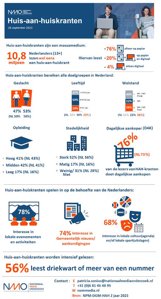 HAAKSBERGEN - Huis aan huiskranten hebben een groot bereik. 10,8 Nederlanders lezen een huis aan huiskrant, waarbij de mannelijke en vrouwelijke lezer aardig in balans is. Onderzoek van het NMO (Nationaal Media Onderzoek) wijst uit dat weekkranten als Rond Haaksbergen een belangrijke, lokale informatiebron zijn voor inwoners. Cijfers geven een grote interesse aan voor lokale evenementen en activiteiten, gemeentenieuws en de plaatselijke cultuuragenda en verslagen van lokale sportverenigingen. ,,Als je de uitkomsten van zo’n
