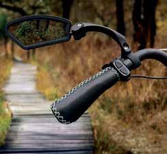 Lynx. Geschikt voor o.a. de standaard fiets, e-bikes en speed pedelecs. Voor montage links of rechts. Het spiegelgedeelte is 360 graden draaibaar en met een inbusbout in de juiste hoek vast te zetten. De buitenmaten van de spiegel zelf is 11,3 cm breed bij 4,5 cm hoog.
