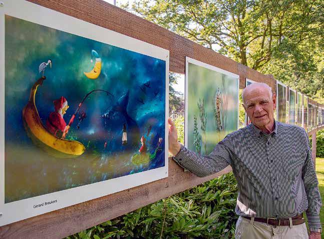 ”Het ophangen van de afbeelding daar boven de vijver was nog een heel gedoe. Dat plekje boven het water en tussen omringend groen is bijzonder. Daar kan ik echt van genieten”, wijst Breukers naar de overkant van de vijver voor ’t Hagen.