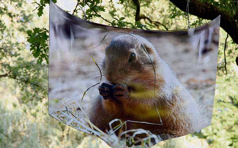 de maanden eigenlijk een rondje Fotobiennale op het Scholtenhagen moeten maken. Dan kom je bijvoorbeeld ‘Trucage’ van Breukers tegen in de lange sliert foto’s van alle fotogroepleden. Ook zijn prachtige ‘prairiehondje op motorkap’ hangt als onderdeel van het drieluik ‘Beestenboel’ aan een bomentak midden in het park. ”Het zijn allemaal mooie foto’s die zijn ingestuurd voor deze Biennale. We mogen daar als Haaksbergen best trots op zijn.”
