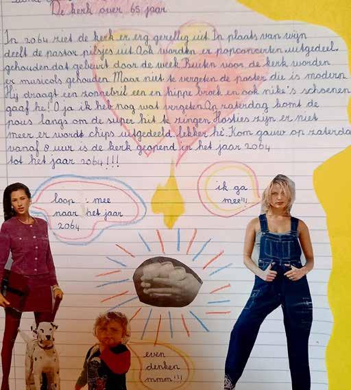 Maar dat is niet de reden van dit stukje... Op de tentoonstelling zag ik een map met allemaal teksten van groep 7 en 8 leerlingen van de Bonifatiusschool en de Troubadour. Ze gaven 25 jaar geleden antwoord op de vraag: Hoe ziet de kerk er over 65 jaar uit? En wat ik daar las, liet me glimlachen.... De hosties waren vervangen door chips, de pastoor komt in housekleding, er wordt discomuziek gedraaid, er is een speeltuin en ipv wijn is er cola. Zo kan ik nog wel even doorgaan.