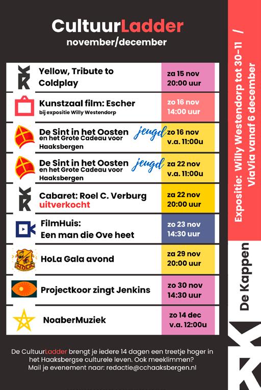 allemaal uitverkocht. Voor die van volgende week zaterdag 22 november (11 uur, 13 uur en 15 uur) zijn nog kaarten verkrijgbaar. Online te reserveren bij De Kappen.