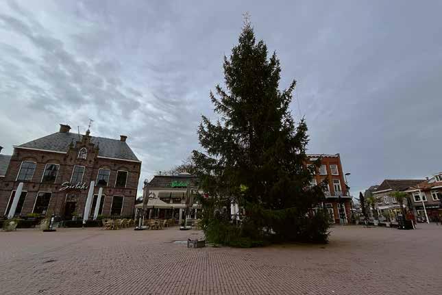 AAKSBERGEN - Sint en zijn pieten hebben het ruime sop gekozen naar Spanje en dus is het tijd voor de Kerstsfeer. Ofschoon de eerste kerstbomen tegenwoordig al worden opgezet als de mussen nog dood van het dak vallen, wacht Haaksbergen altijd netjes tot de Kerstman in aantocht is. Dus was het deze week tijd om op de Markt de grote Kerstboom weer in de benen te hijsen. En dat is geen sinecure gezien de hoogte van de spar rond de 12 meter, die dan helemaal moet worden volgehangen met duizenden lampjes. Kennelijk bij gebrek aan kunde in eigen huis zijn daarvoor zijn Brent en Tim van een feestverlichtingsspecialist uit Assen ingevlogen. Woensdag zal de kerstboom in volle glorie schitteren voor de ingang van de Pancratius. Maar hoeveel lampjes hangen er nou eigenlijk in zo’n enorme dennenboom, vroegen we aan Brent en Tim. ”Oef. Hoeveel bollen snoer hebben we nodig? Er zitten 441 lampjes op een bol. Nou…dat gaat naar de 5000 lampjes. En dan heb je een prachtig verlichte Kerstboom als sfeermaker voor kerst.” De komende weken te bewonderen op de Markt.