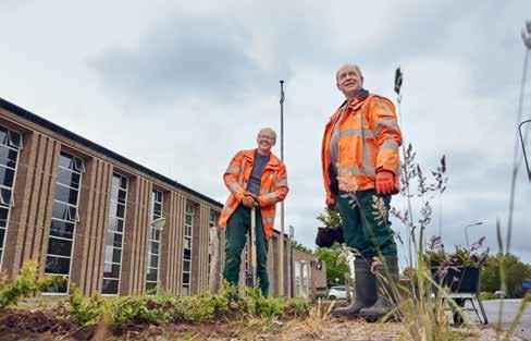 Weten wat je kunt en niet kunt Onderzoek, ontwerp, uitvoering, onderhoud. Op die niveaus werkt Frisia Groep voor Siblu. “We hebben alle bomen geïnventariseerd, gekeurd, de waarde bepaald en onderhouden. Op basis van ecologisch onderzoek hebben we een natuurinclusief ontwerp gemaakt, om het park ecologisch aan te sluiten op omringend natuurgebied. Daarna volgde de complete terreininrichting: grondwerk, bestrating, de aanleg van wadi’s en het planten van bomen, struiken, vaste planten, kruiden en gras.” Met zoveel kennis in huis is het wel belangrijk om je eigen grenzen te kennen, zegt Douma. “Onze eigen ecoloog verzorgt bijvoorbeeld het traject voor vleermuizen van quickscan tot de uitvoering van mitigerende maatregelen. Maar voor diepgravend ecologisch onderzoek schakelen we een vaste partner uit ons Natuurpro netwerk in.”