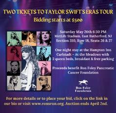 Thanks to the generosity of board member Kevin Dowd and his wife Cathy, the Foundation was able to auction off tickets to Taylor Swift’s sold-out Eras Tour. The auction was held in March and advertised to the public. The package included hotel accommodations and two tickets to the show at MetLife Stadium. The package raised $2,250 for the Foundation and was purchased by a young lady who had been personally touched by pancreatic cancer.
