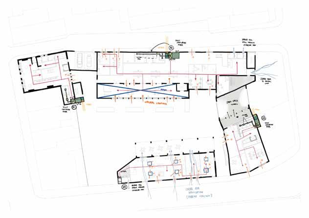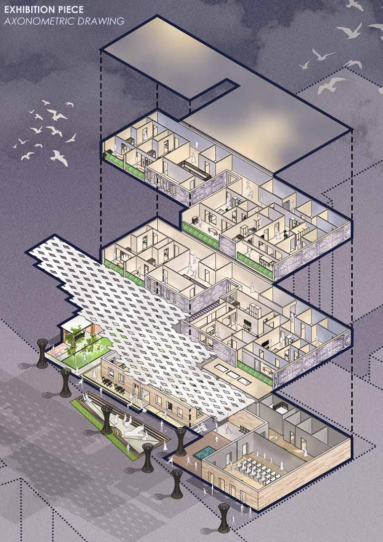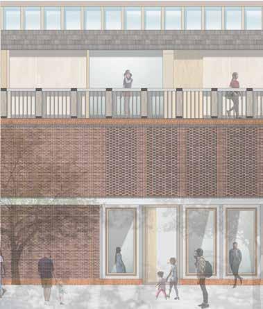 My proposal focuses on creating a design scheme that has low-embodied carbon. This would be achieved by retrofitting the existing buildings and reusing existing materials in the new buildings to reduce the carbon emissions from the construction process. My design scheme emphasizes the use of the glulam structure, which offsets more carbon than it outsets. The motif of textile patterns has been a recurring theme throughout my design. These could be seen from the perforated exterior brick walls that mimic the overlaying and intersecting threads in knitting. Sculptured internal plaster wall panels in the art gallery space which portray folds of fabric induce the desire for touch from visitors. Atrium space with a top light and clerestory window will be applied to welcome more daylight into the space and increase the solar gain to reduce reliance on the mechanical system.