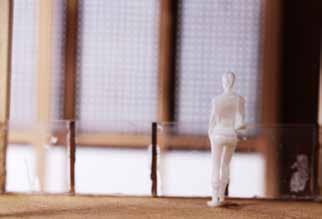 This 1:50 corner model features the corner part of the manufacturing building which includes the staircase and the balcony at the top. The curtain wall unit offers visitors and passerby an insight into the action of the manufacturing space Meanwhile, the perforated brick cladding on the top harmonises well with the glulam timber frame structure Visitor’s experience in the space is further enhanced with a light well in the entrance area with lights coming into the corridor of the first floor.