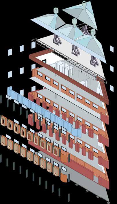 The winter garden is primarily functioning as a space to welcome light into the atrium space. It is supported with the secondary structure.
