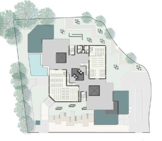 LANDSCAPE HAS BEEN ADDED IN SUCH A WAY THAT IT ENHANCED THE STRUCTURE AND SUPPORTS THE CONCEPT OF MODERNISM AS WELL AS MINIMALISM. VERTICAL WINDOWS WERE ADDED TO GET SUNLIGHT IN THE ROOM WHICH IS IMPORTANT IN A LIBRARY VERTICAL WINDOWS AND FINS ALSO ACTS AS VENTURI EFFECT.