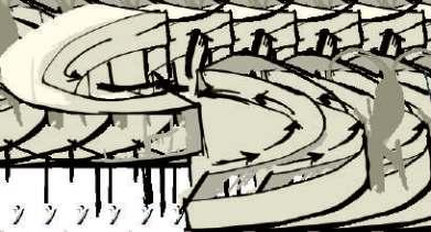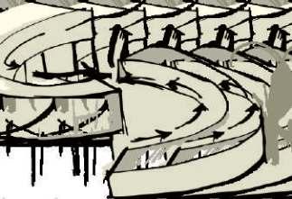 THE MULTIPLE CORRIDORS WHICH ARE CREATED TEND HAVE A MAJOR ROLE IN STACK VENTILATION KEEPNG THE STRUCTURE THERMALLY COMFORTABLE