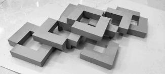 PLACING A CUBOIDAL BLOCK. ADDED AN CUTOUT OF OPEN SPACE THEN CUTOUT THE SQUARES FROM THE CORNER TO CREATE AN OPPORTUNITY TO CONNECT THE MODULE. HENCE AFTER REPEATING THE SAME MODULE FORM DERIEVED.