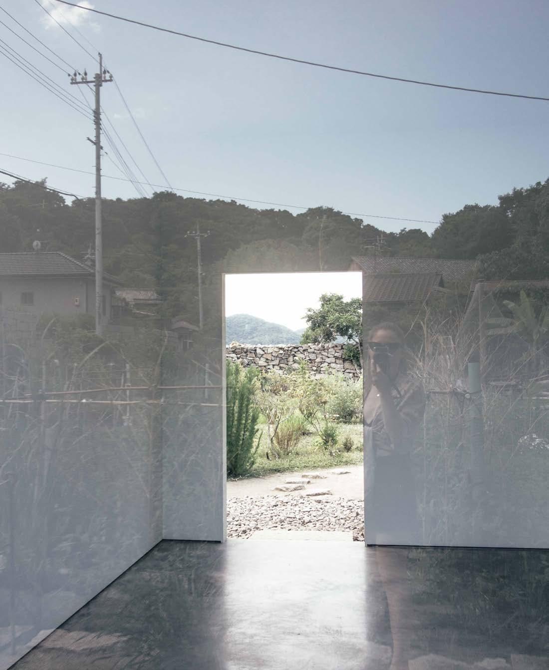 The entrance features a simple door that rotates around a wooden rod. Upon entering, visitors are asked to bow down, creating a sense of entering a sacred space and emphasizing the transition from exterior to interior.