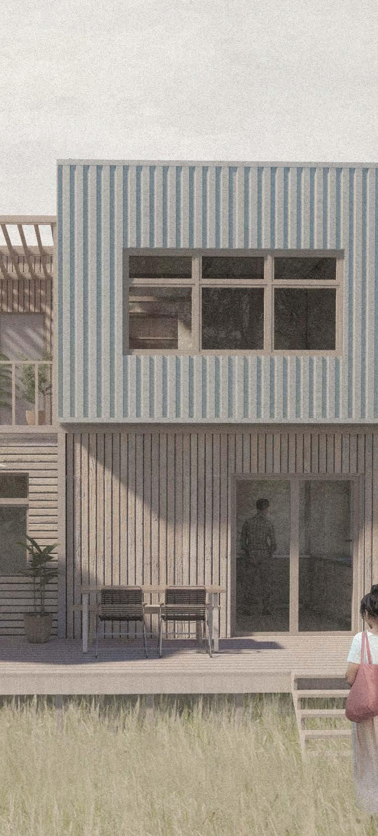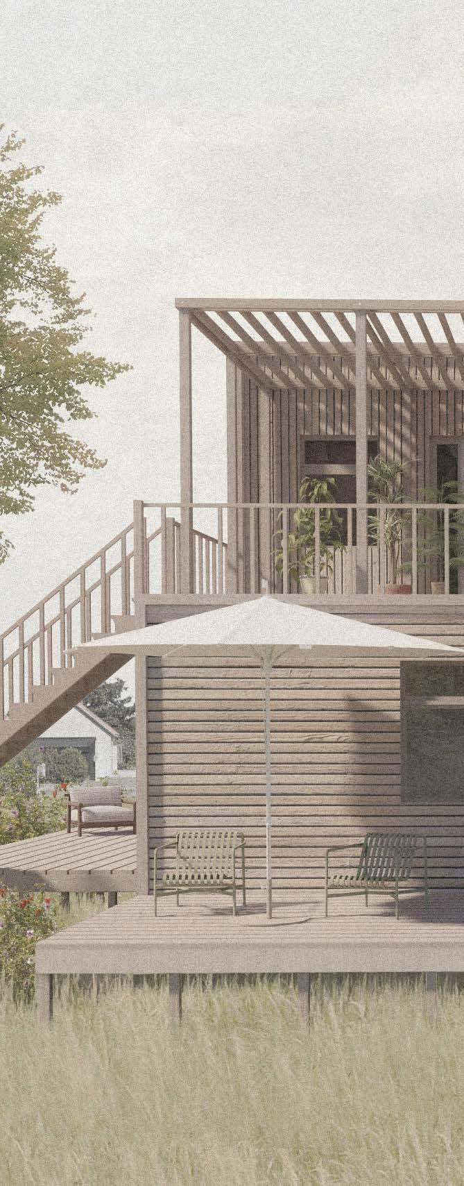 The thesis proposes to develop new dwellings on the empty plot next to the existing farm, taking offset in the continued demand for housing in the municipality. The design of these new dwellings aims to push the current Danish building culture of larger and larger homes, by proposing that we can get more out of less with better-planned space and more shared facilities, which is inturn introduced in some of the existing buildings on site.