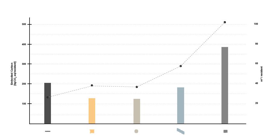 Each inhabitant having 21 m2 in average + 5,6 m2 shared heated facilities