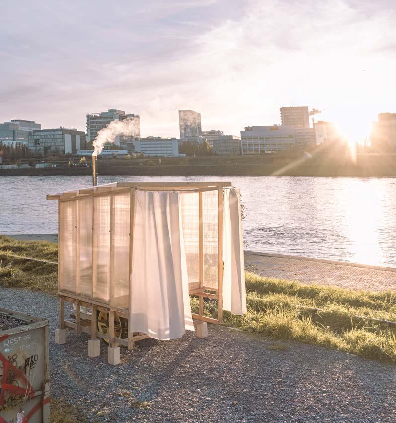 Constructed on a bike trailer, the sauna can be easily transported to various locations, inviting users to experience the beauty of the temporary while preserving the integrity of these environments.