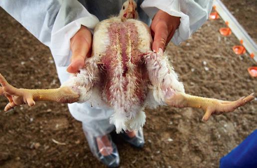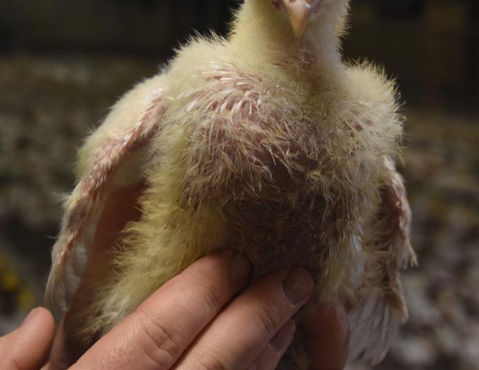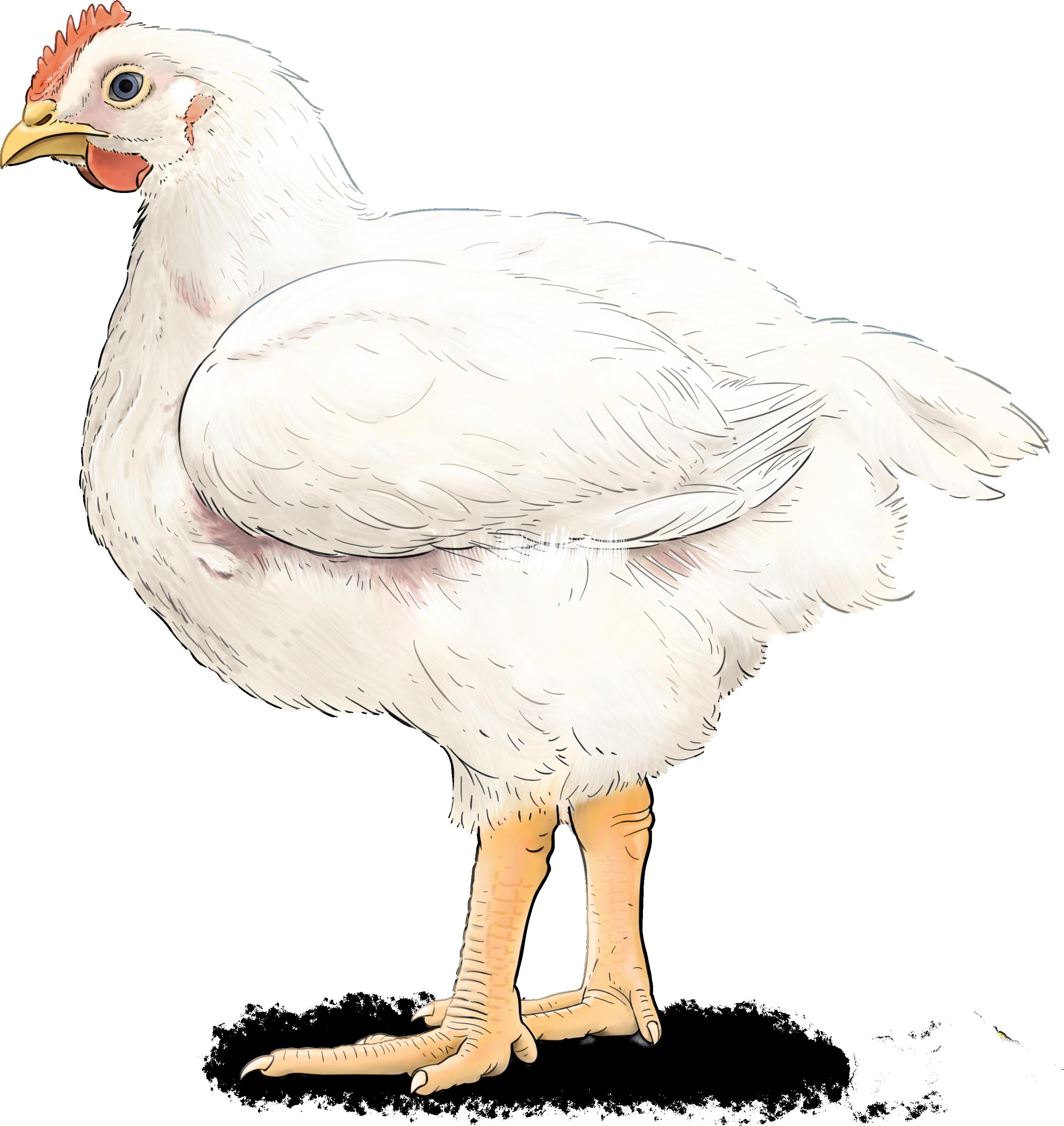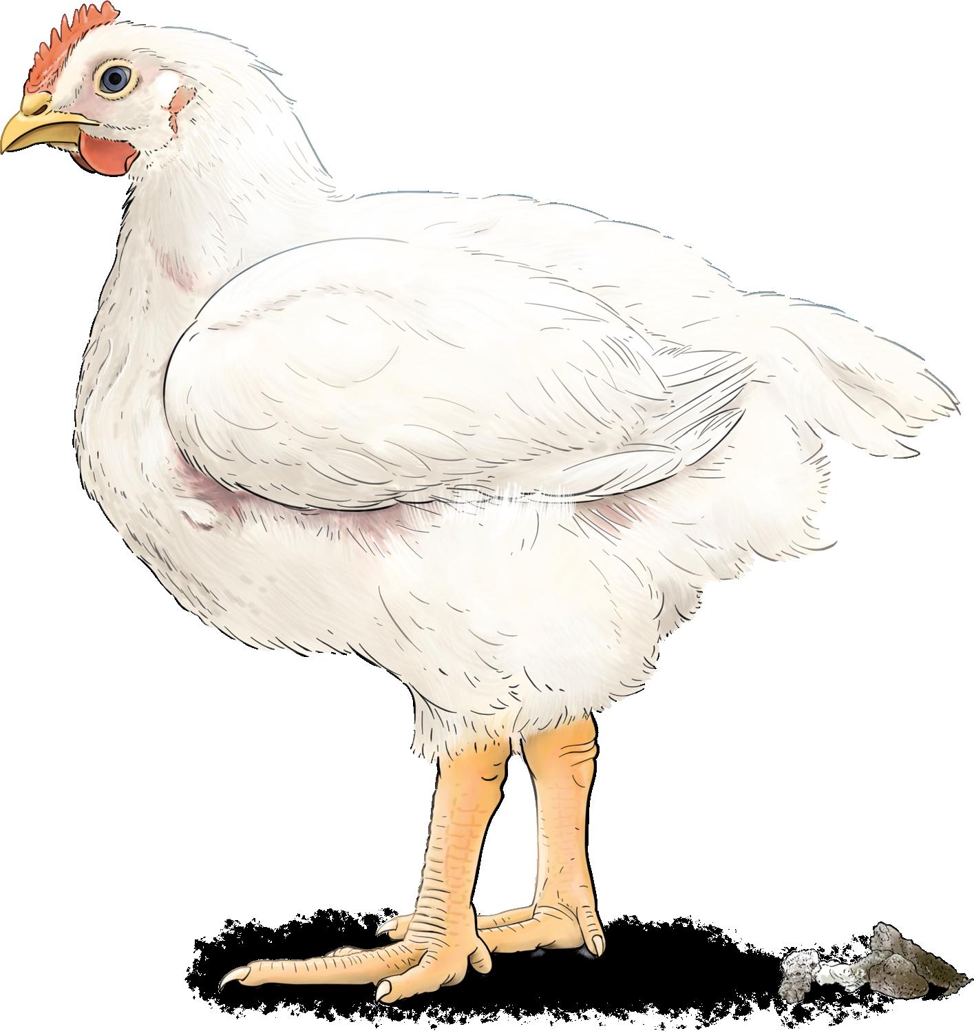 The broilers’ bones are young and still flexible. Problems with the locomotion system or skeleton are often related to the joints (heavy weight of broiler). Enterococcen may casue femoral head necrosis and abscesses on the spine. During catching for slaughter you have to be careful not to break the bones.