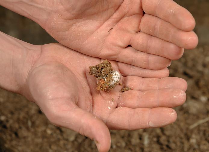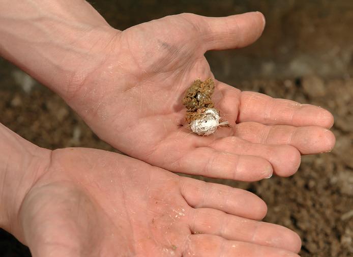 Roll a dropping from one hand to the other. Good consistency: no dirt is left behind on your hands. If the droppings stick to your hand, this indicates poor fat digestion.