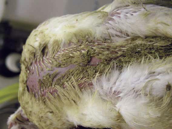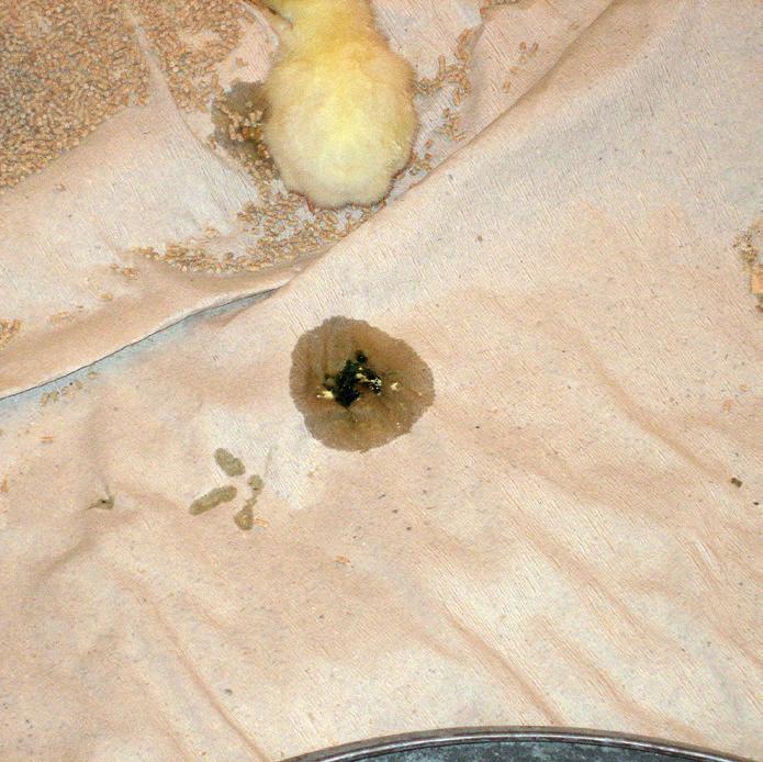 Collect fresh droppings on paper. A large water rings around the droppings (photo) indicates an intestinal problem.