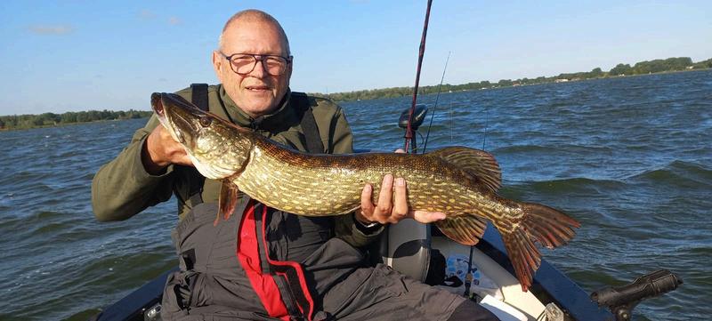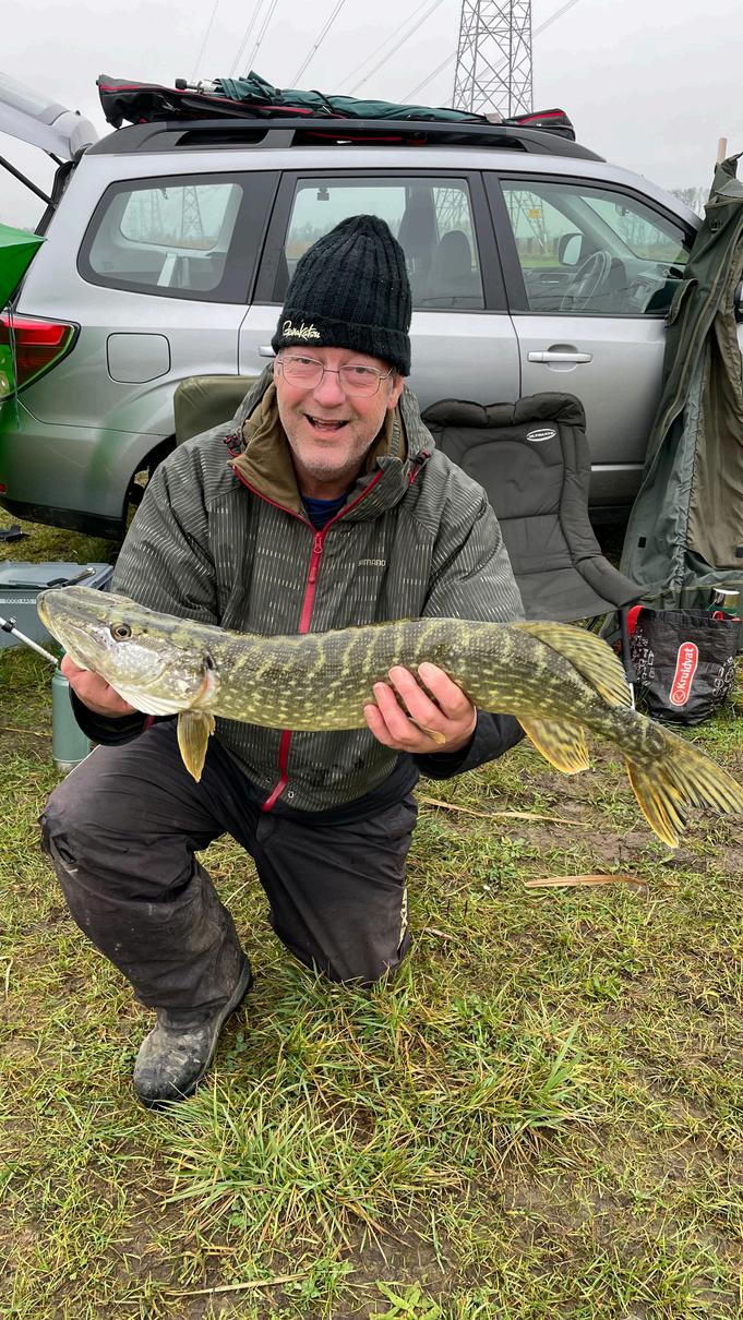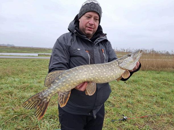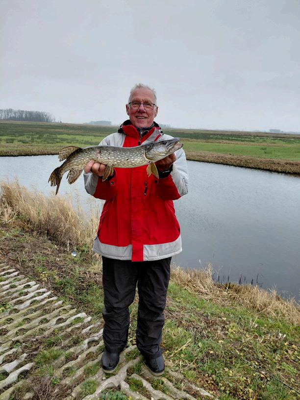 Daar aangekomen de hengels klaar maken en met dood-aas aan de slag. Na ruim een uur volgde de eerste aanbeet en Nico ving een mooie snoek Snel onthaken een foto maken voor in de groepsapp en de snoek weer terugzetten Intussen zagen wij op de app dat er hier en daar een snoek werd gevangen Na een halfuurtje de spullen in de auto en op naar vis plek nummer 3, onderweg zagen wij dat de eerste plek nu vrij was, dus daar gestopt en de hengels gereed gemaakt Na ongeveer 15 minuten kreeg ik beet en ving ik mijn eerste snoek Ook hier onthaken, meten, een foto maken en de snoek weer terug Na 15 minuten opnieuw beet en de tweede snoek was een feit Rond 13:00 uur naar het restaurant voor een kleine lunch Hier werden de ervaringen en mogelijke stekken voor de middag doorgesproken en na plusminjus 40 minuten weer op pad Wij hebben in de middag verschillende plekken bezocht, maar bij de meeste konden wij niet vissen daar er al vissers zaten Uiteindelijk zijn wij rond 16:00 uur gaan inpakken en zijn wij huiswaarts gegaan Naast het vissen hebben wij genoten van de mooie omgeving Jammer genoeg hebben wij geen bijzondere roofvogels kunnen spotten Wij hebben in ieder geval een mooie dag gehad en zijn weer een ervaring rijker Wat opviel was dat de meeste stekken waar je met dood-aas kan vissen veelal bezet waren Dus het vinden van een goede plek werd hierdoor moeilijker