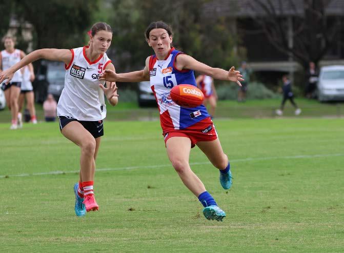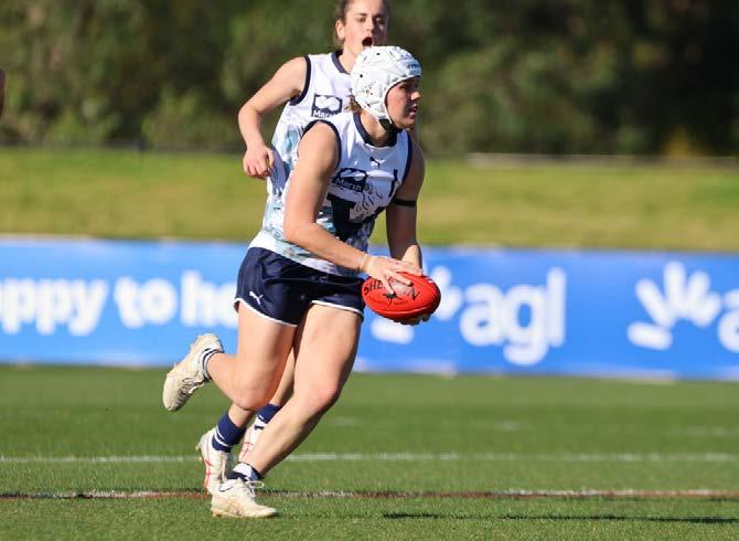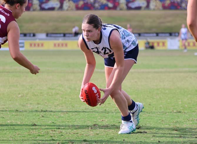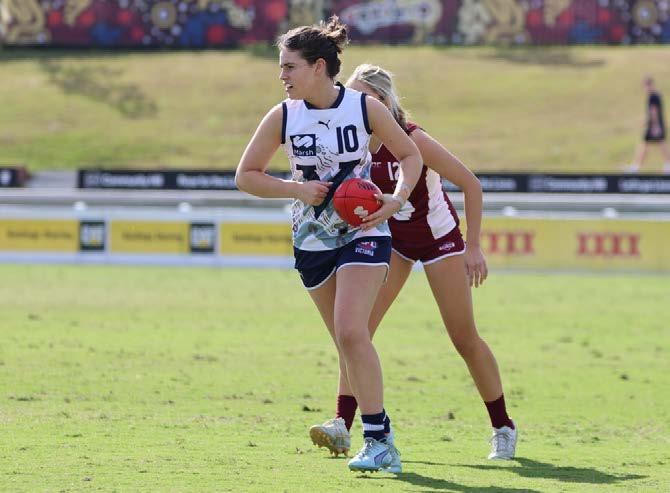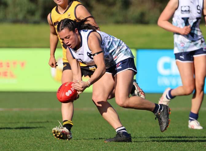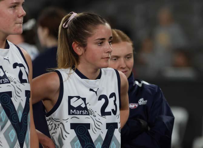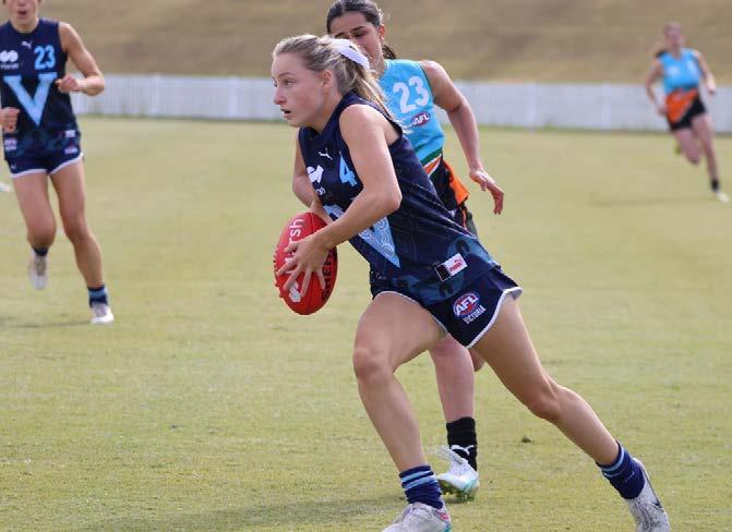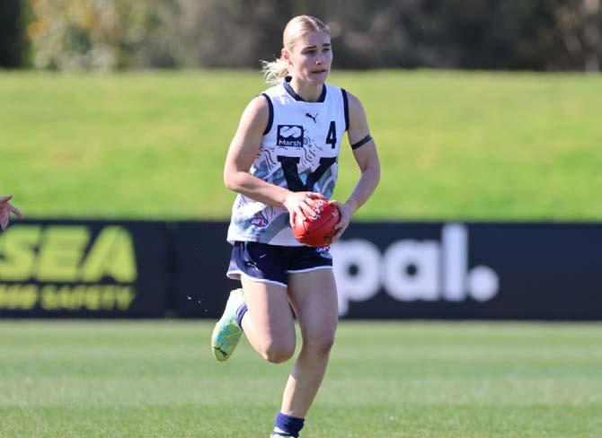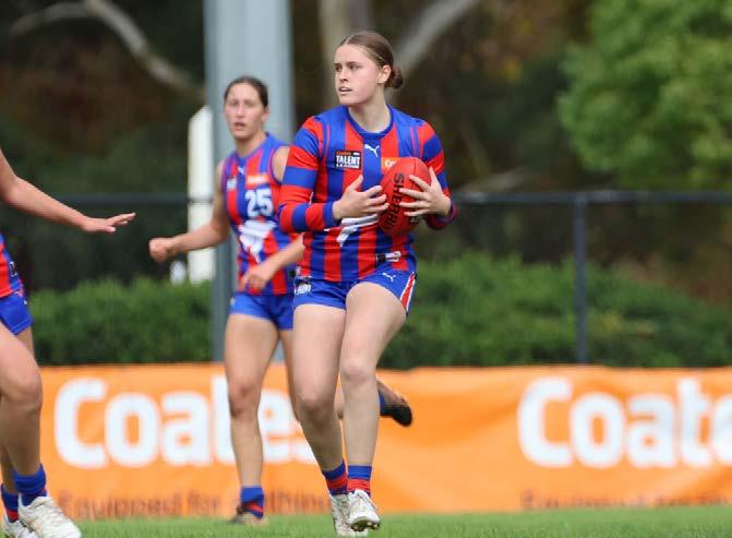 intensity and tackling pressure that football brought. Painter started at the Sandhurst Dragons where she won an incredible five premierships before moving onto the White Hills Football Club and of course, Pioneers. Looking well above the level from a young age, Painter announced herself fully at the Under 16 Championships in 2022, where she won Vic Country's MVP – ahead of a stacked lineup including potential pick one Ash Centra – across two games