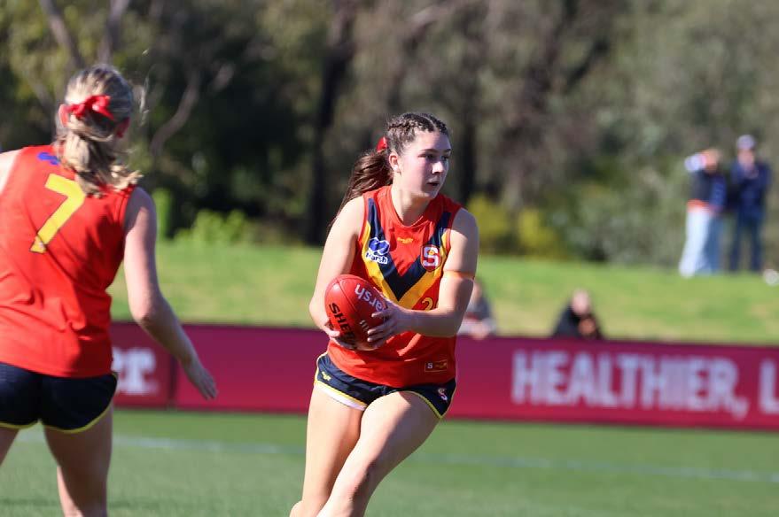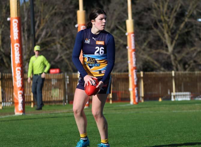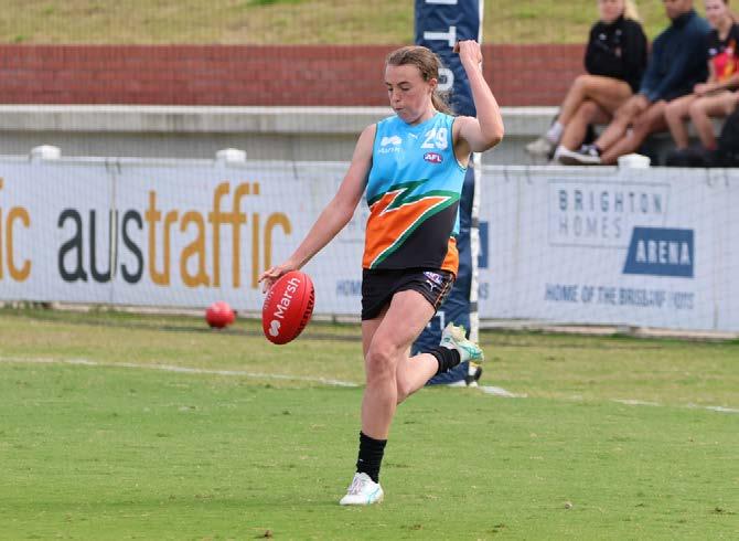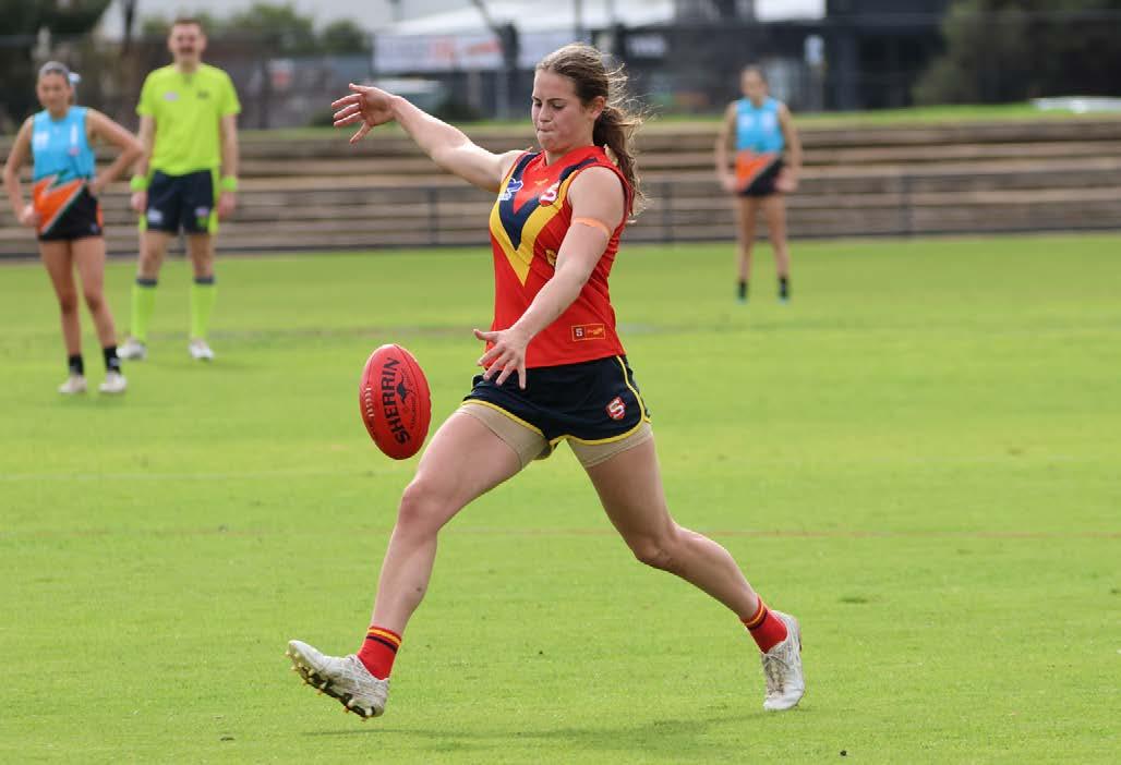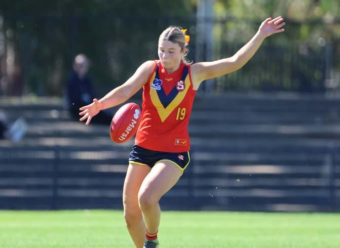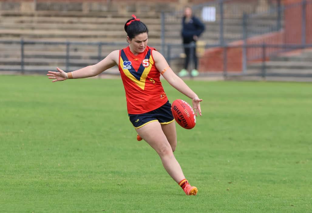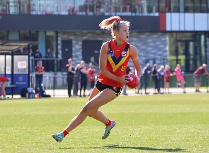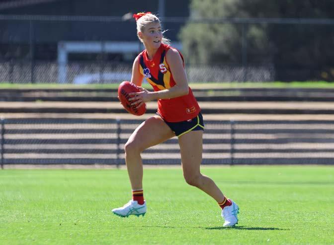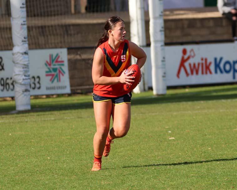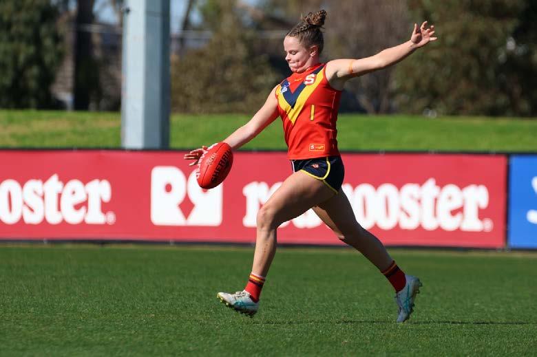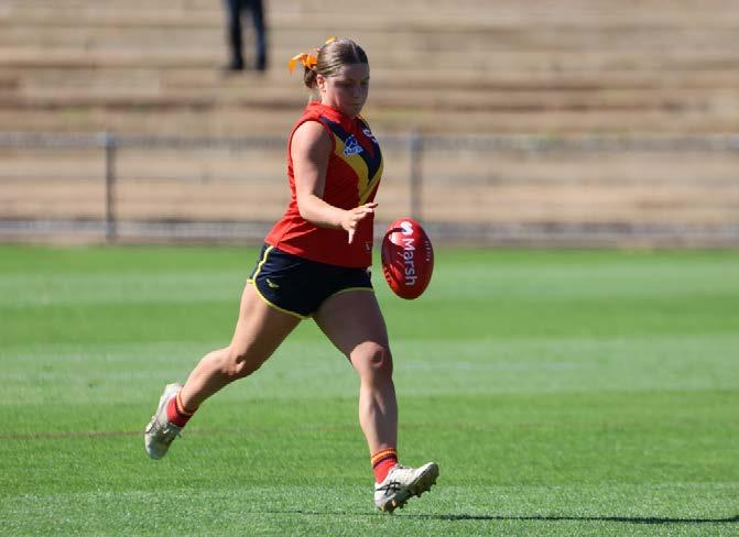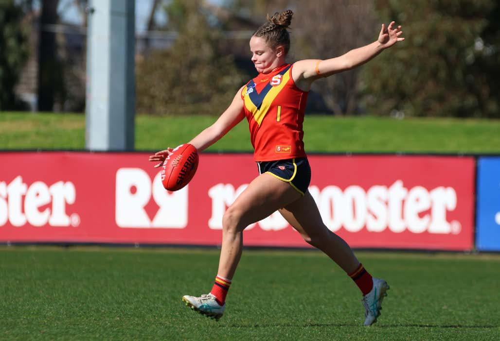 formulative years of footy, Evans got her chance in 2021 where she booted 12 goals across 24 games playing in both the Under 15s and Under 16s sides. Her double bottom-age season in 2022 brought about change though as she caught the eye playing through the Under 16s side and when whispers started circulating that there was a highly talented local player with elite footskills making her way through the pathway, it caught the attention of South Australian