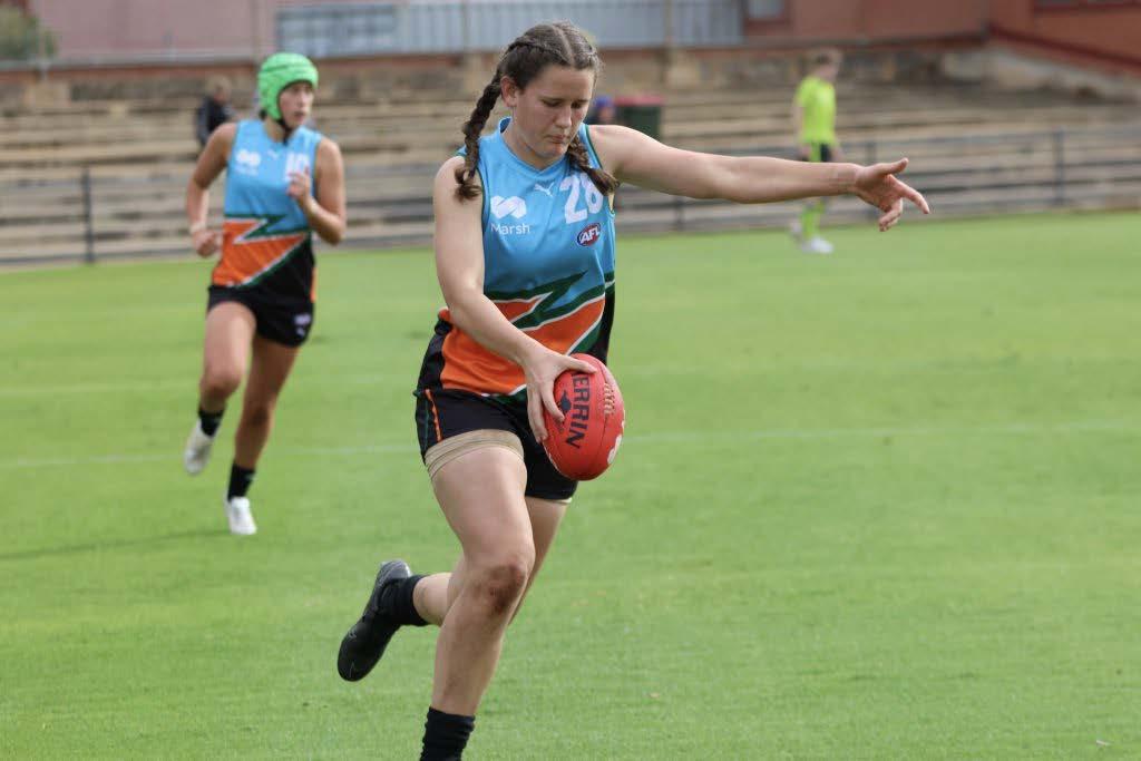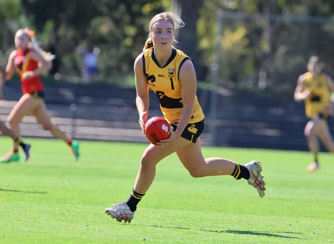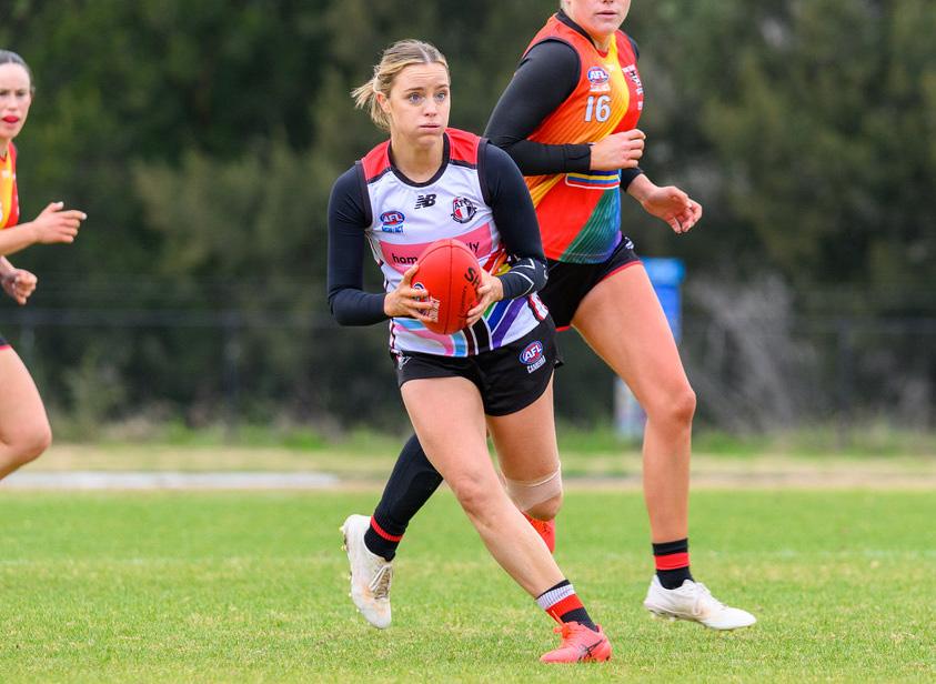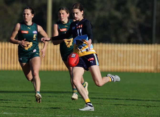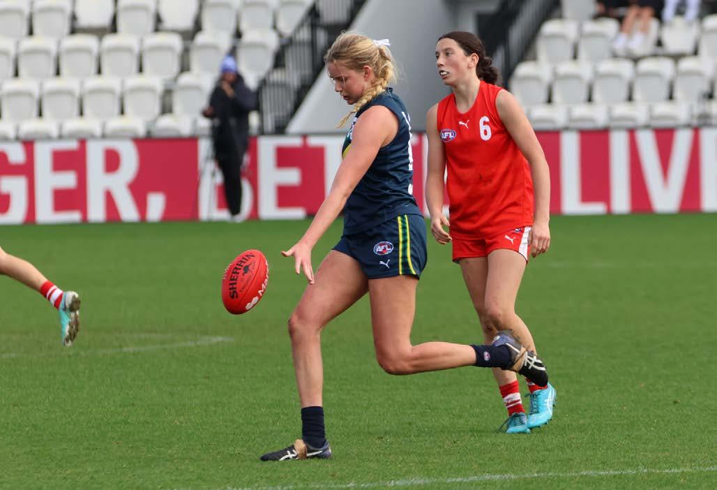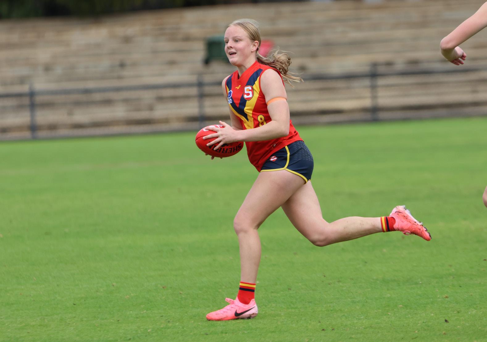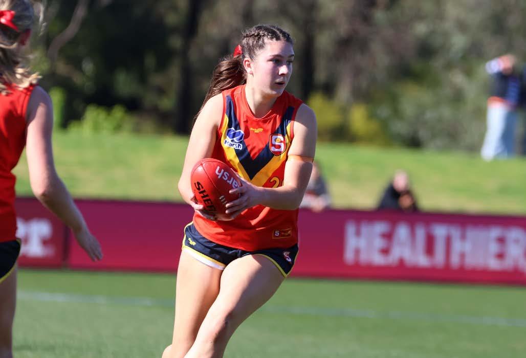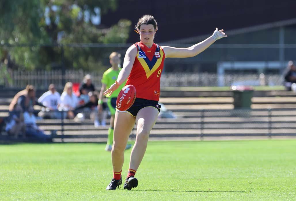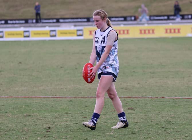 formulative years of footy, Evans got her chance in 2021 where she booted 12 goals across 24 games playing in both the Under 15s and Under 16s sides. Her double bottom-age season in 2022 brought about change though as she caught the eye playing through the Under 16s side and when whispers started circulating that there was a highly talented local player with elite footskills making her way through the pathway, it caught the attention of South Australian