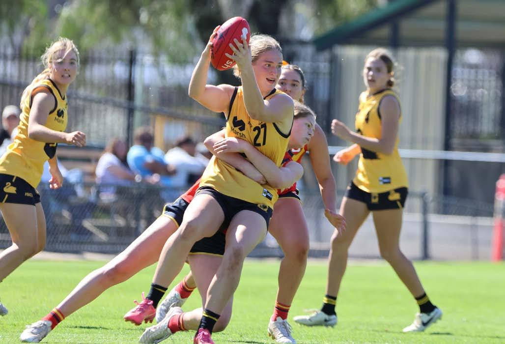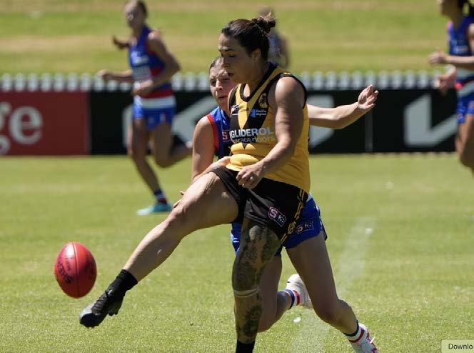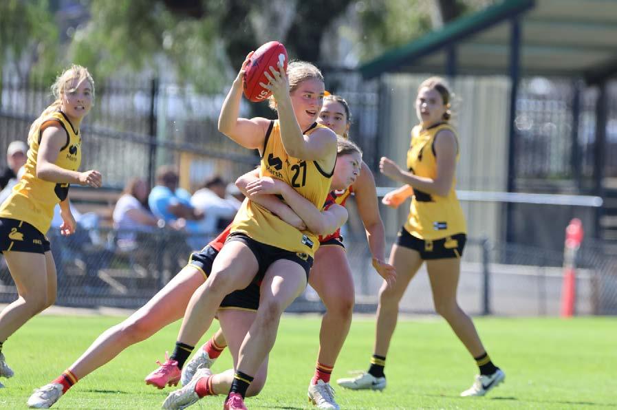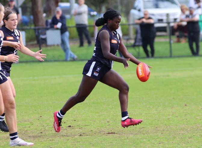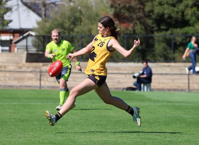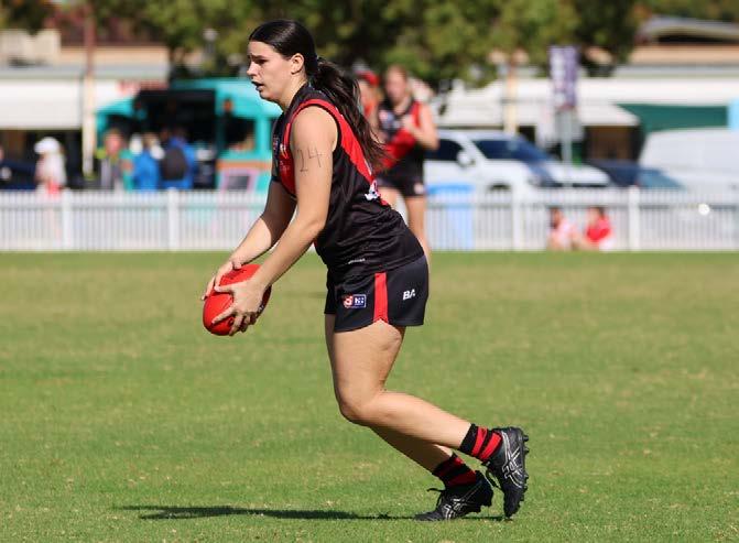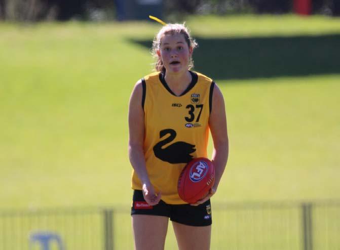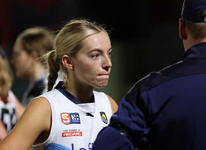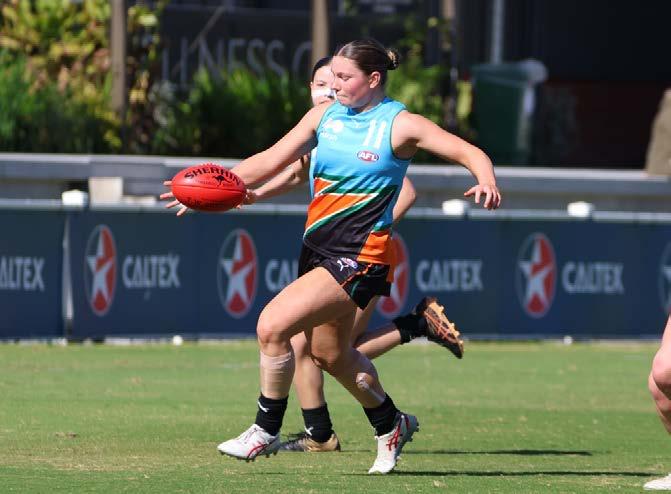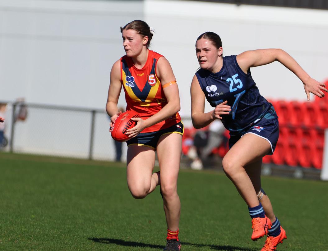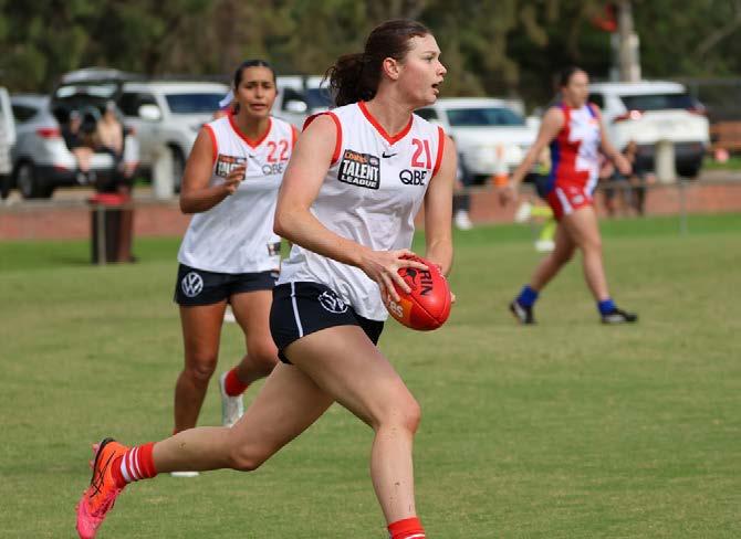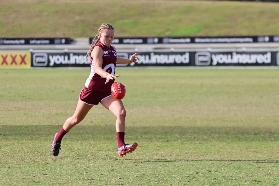 formulative years of footy, Evans got her chance in 2021 where she booted 12 goals across 24 games playing in both the Under 15s and Under 16s sides. Her double bottom-age season in 2022 brought about change though as she caught the eye playing through the Under 16s side and when whispers started circulating that there was a highly talented local player with elite footskills making her way through the pathway, it caught the attention of South Australian