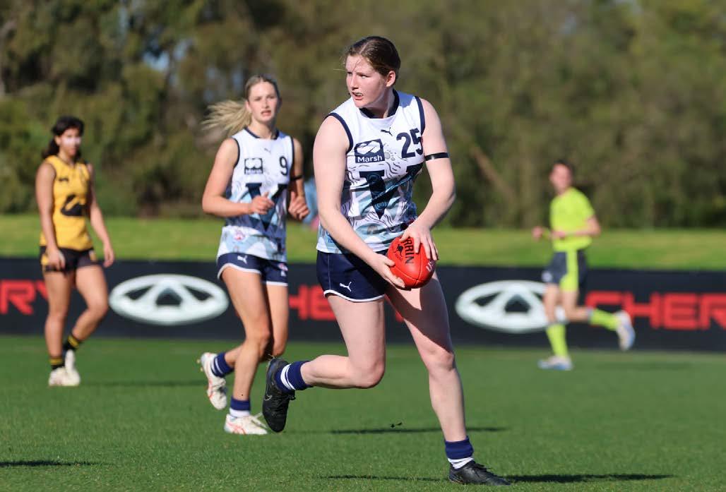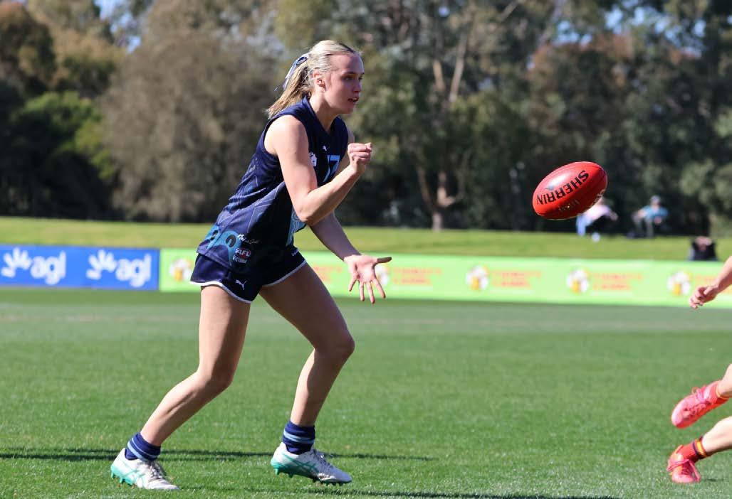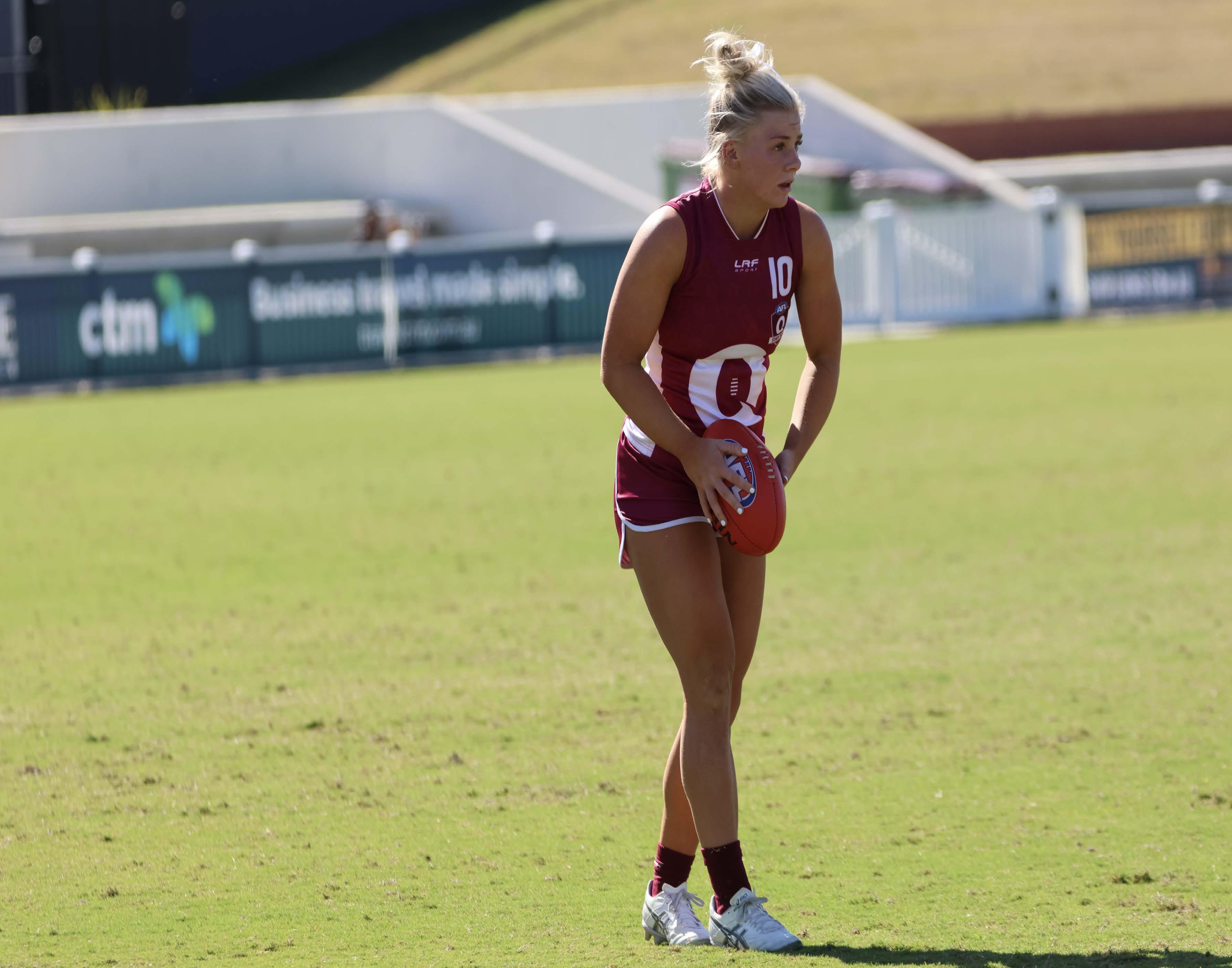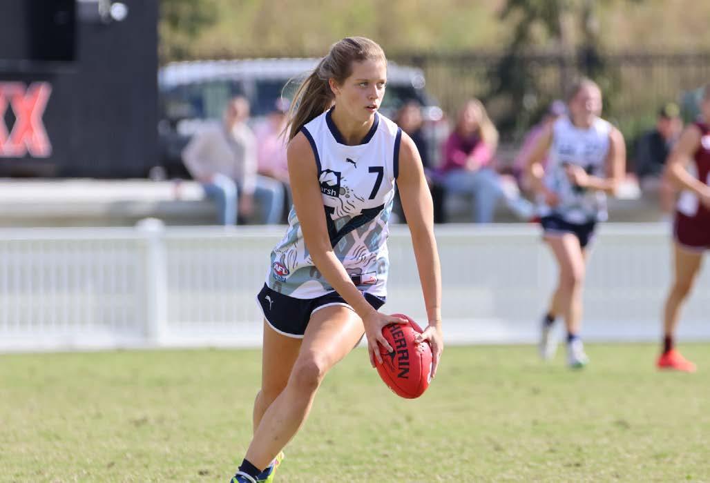 When dominating at the 2022 Under 16s Championships between West Australian players a couple of years ago, Wolmarans showed traits similar to Amy Franklin. It is an apt comparison due to Wolmarans athleticism despite her height, and a booming kick. She has been a handful in the WAFLW for Subiaco, kicking six goals in her first game this season, and then carried that form through to the national carnival where she earned All-Australian honours. Won MVP for her side in the Under 17 Futures match too.
