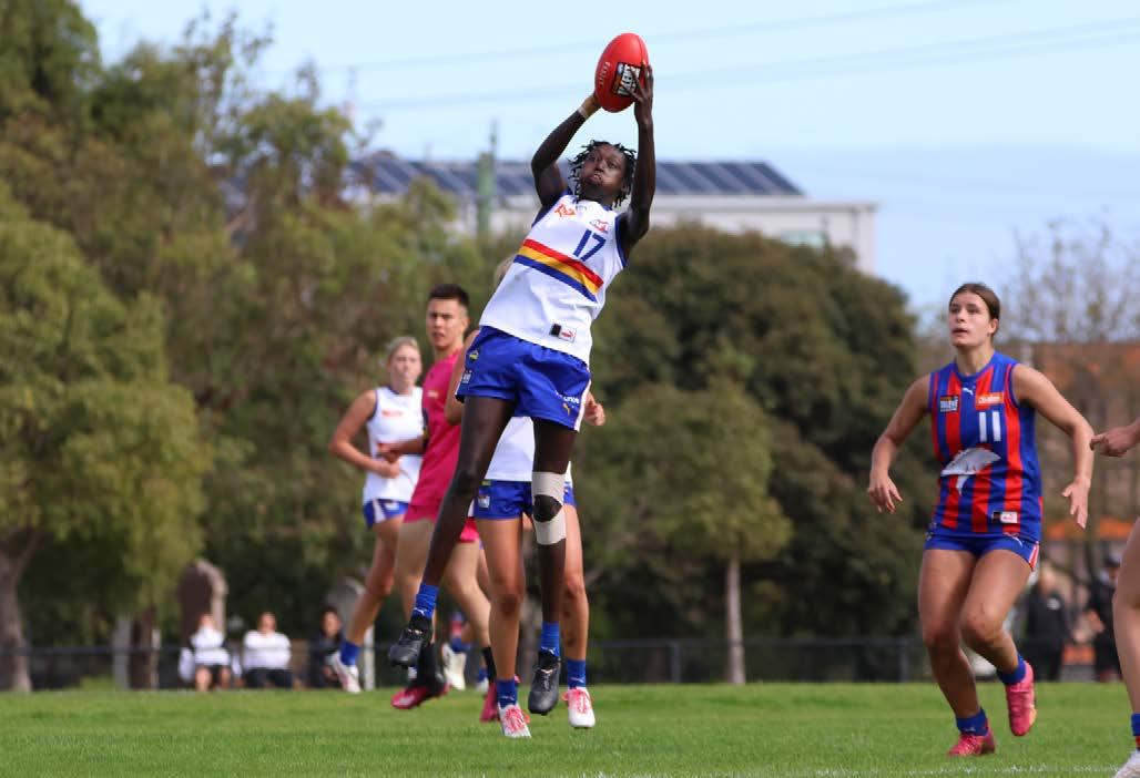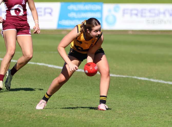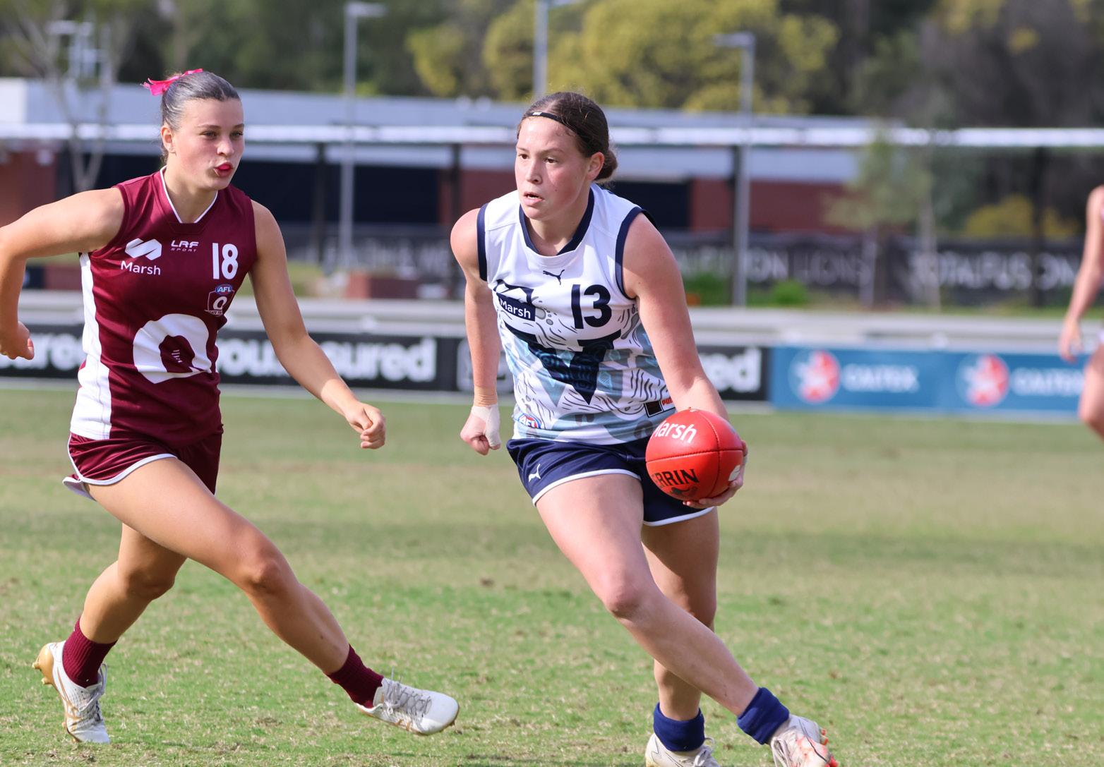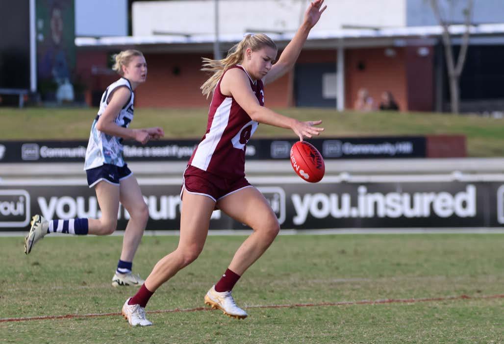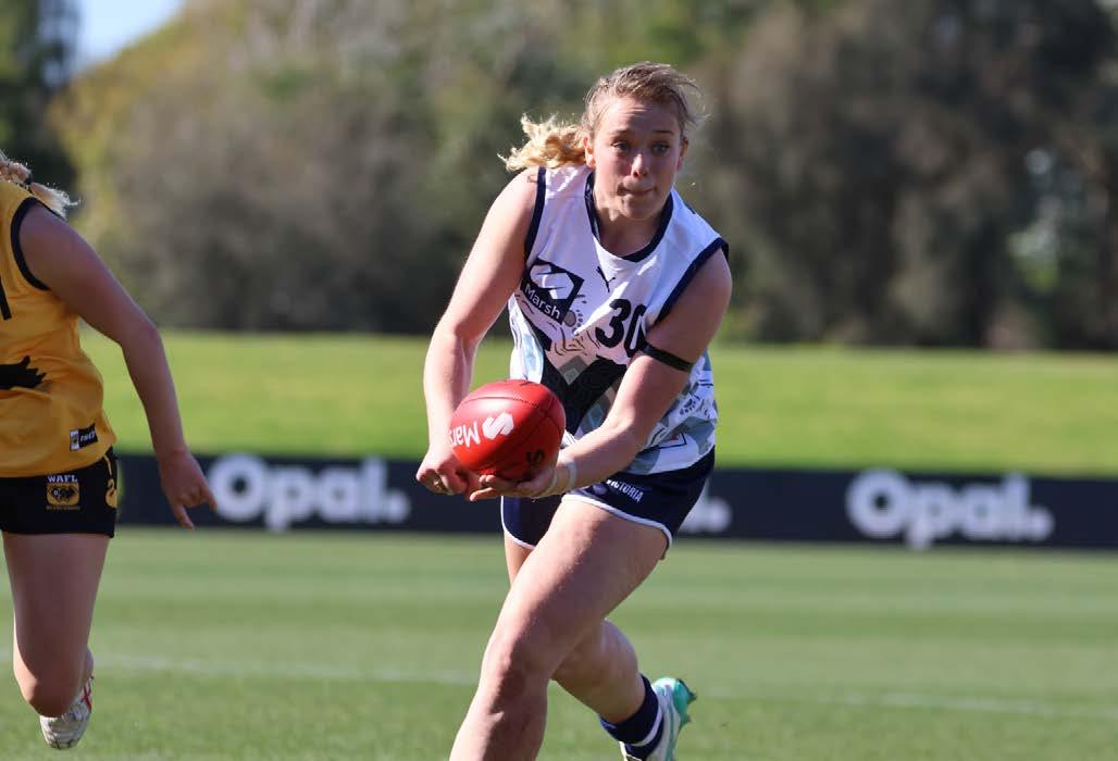 When dominating at the 2022 Under 16s Championships between West Australian players a couple of years ago, Wolmarans showed traits similar to Amy Franklin. It is an apt comparison due to Wolmarans athleticism despite her height, and a booming kick. She has been a handful in the WAFLW for Subiaco, kicking six goals in her first game this season, and then carried that form through to the national carnival where she earned All-Australian honours. Won MVP for her side in the Under 17 Futures match too.