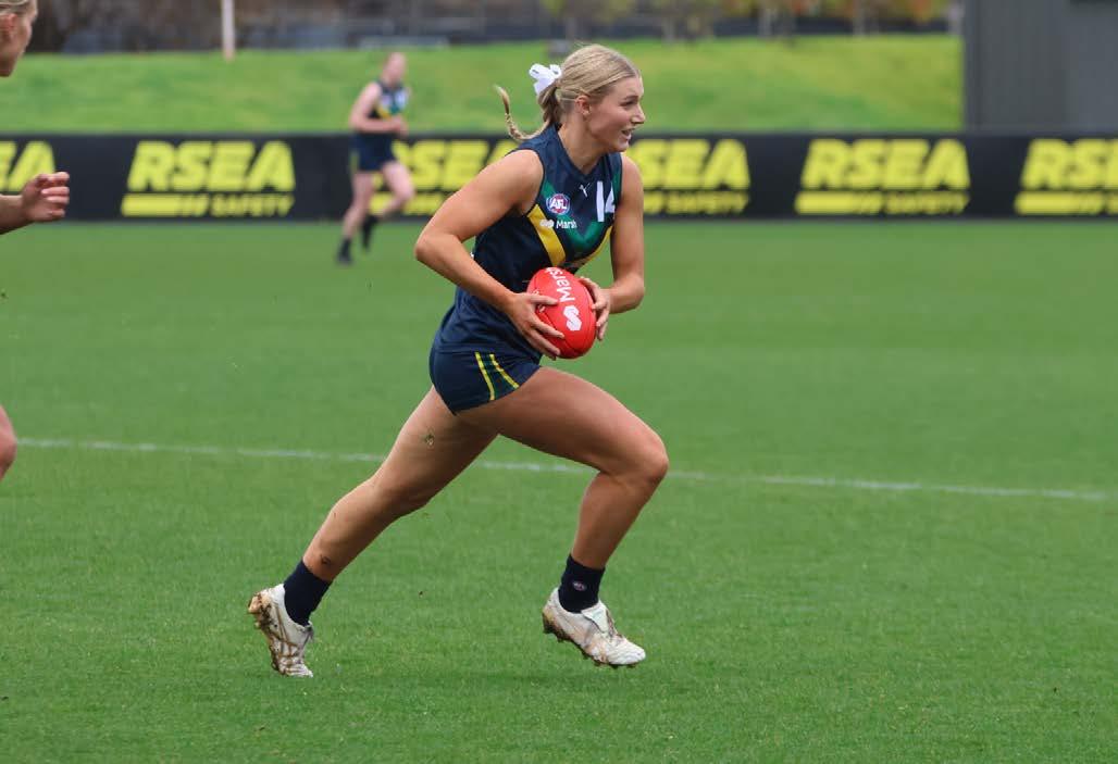 A 179cm ultimate athletic utility does not come around too often, but that is certainly an apt way to describe South Australian Charlotte Riggs. Already a SANFLW premiership player from her bottom-age season and having played seniors for three years now, the versatile Riggs has predominantly turned out in defence, but also played through the ruck and up forward. An incredibly bubbly person, Riggs lives in the moment and enjoys everything as it comes, but those moments can also weigh incredibly on her until she snaps back,