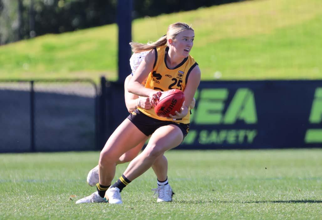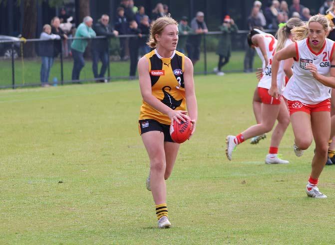 the talented junior got scouted into the Eastern Ranges Futures and Vic Metro Under 16s followed. The natural progression – which included getting onto Eastern's Under 18s list – was the next step, and she was named vice-captain as a bottom-ager. She would play alongside a host of future AFLW Draftees including Laura Stone, Alyssia Pisano, Jess Vukic and close friend Hayley McLaughlin who would all reach the next level. A Hawks fan since she was ...