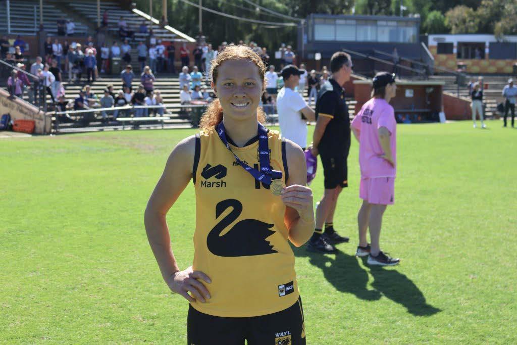 Without a doubt, Lily Paterson was one of, if not the, biggest improver in 2024. She showed promising signs as a bottom-ager, largely in spurts playing forward, but a midfield move for Swan Districts prompted a huge change in the top-ager as she quickly became one of the most prolific players in the WAFL Women's. Paterson is relatively new to the sport, having picked up the code a few years ago after coming from a dual soccer and netball background. She was invited to try out at the Swans, and since then changed her opinion and never looked back. Learning the